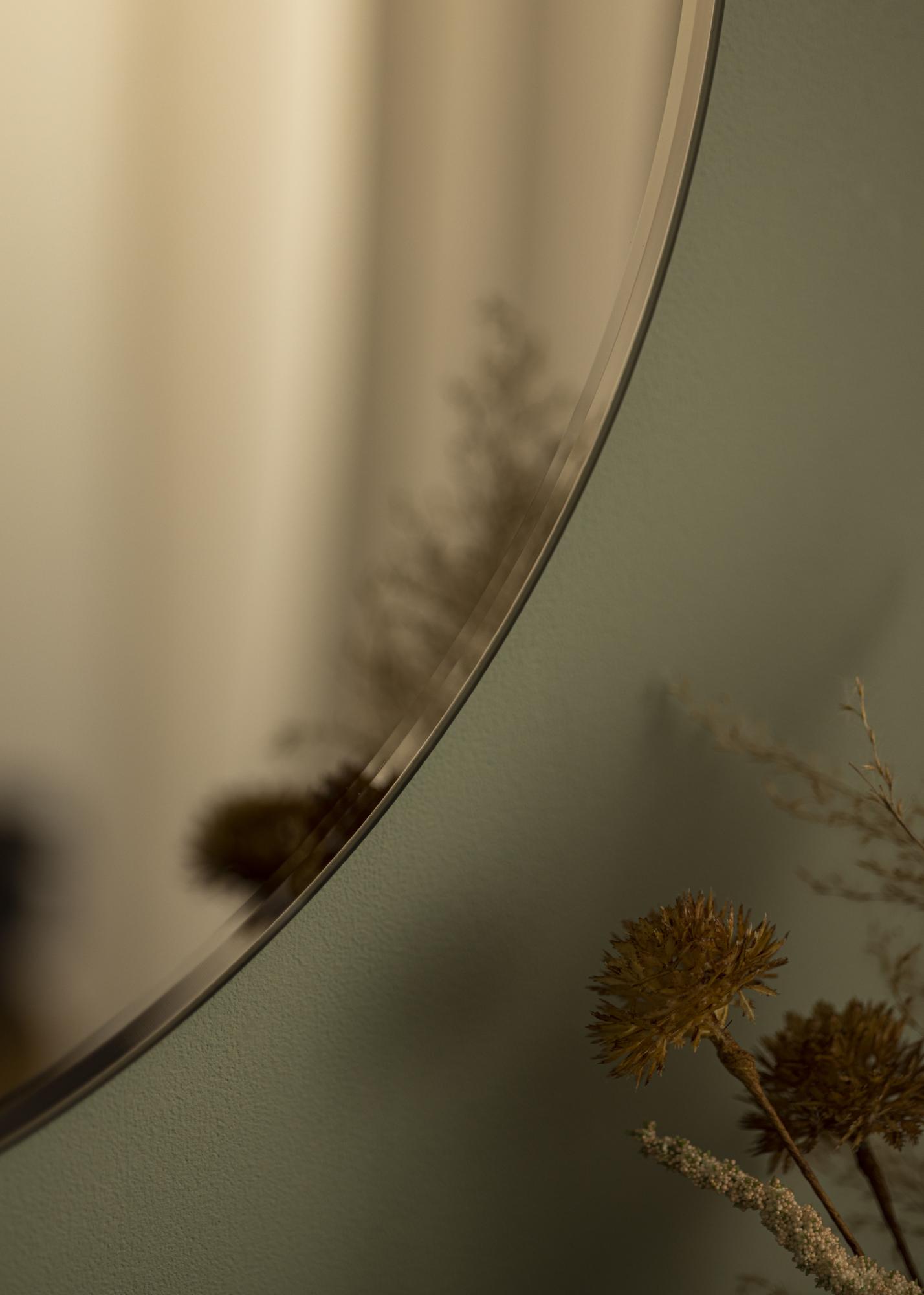 Zrcalo u tamnijoj nijansi bronce bit će ekskluzivan dodatak vašem domu. Ovo zidno zrcalo ima meki okrugli oblik i elegantno brončano zrcalno staklo. Ekskluzivni dojam zaokružuje brušeni fasetirani rub. Zrcalo jednako dobro funkcionira samo kao i zajedno s drugim zrcalima različitih veličina i nijansi boja.
