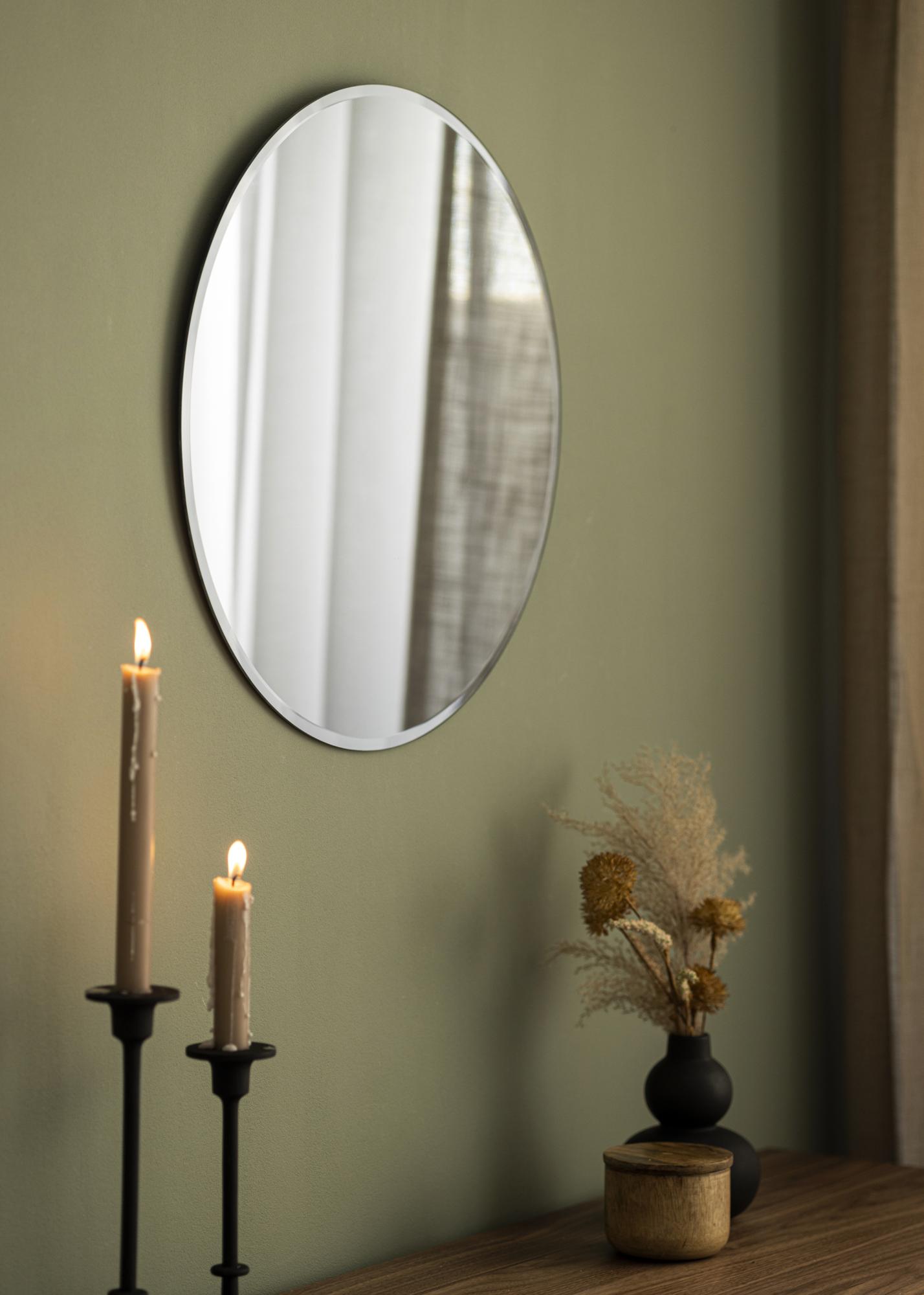Elegantan osjećaj koji oblik i boja zrcala prenose pojačan je činjenicom da zrcalo nema okvir. Umjesto toga, rubovi su ukrašeni lijepim facetiranim rubom, koji zrcalu daje nešto posebno.
