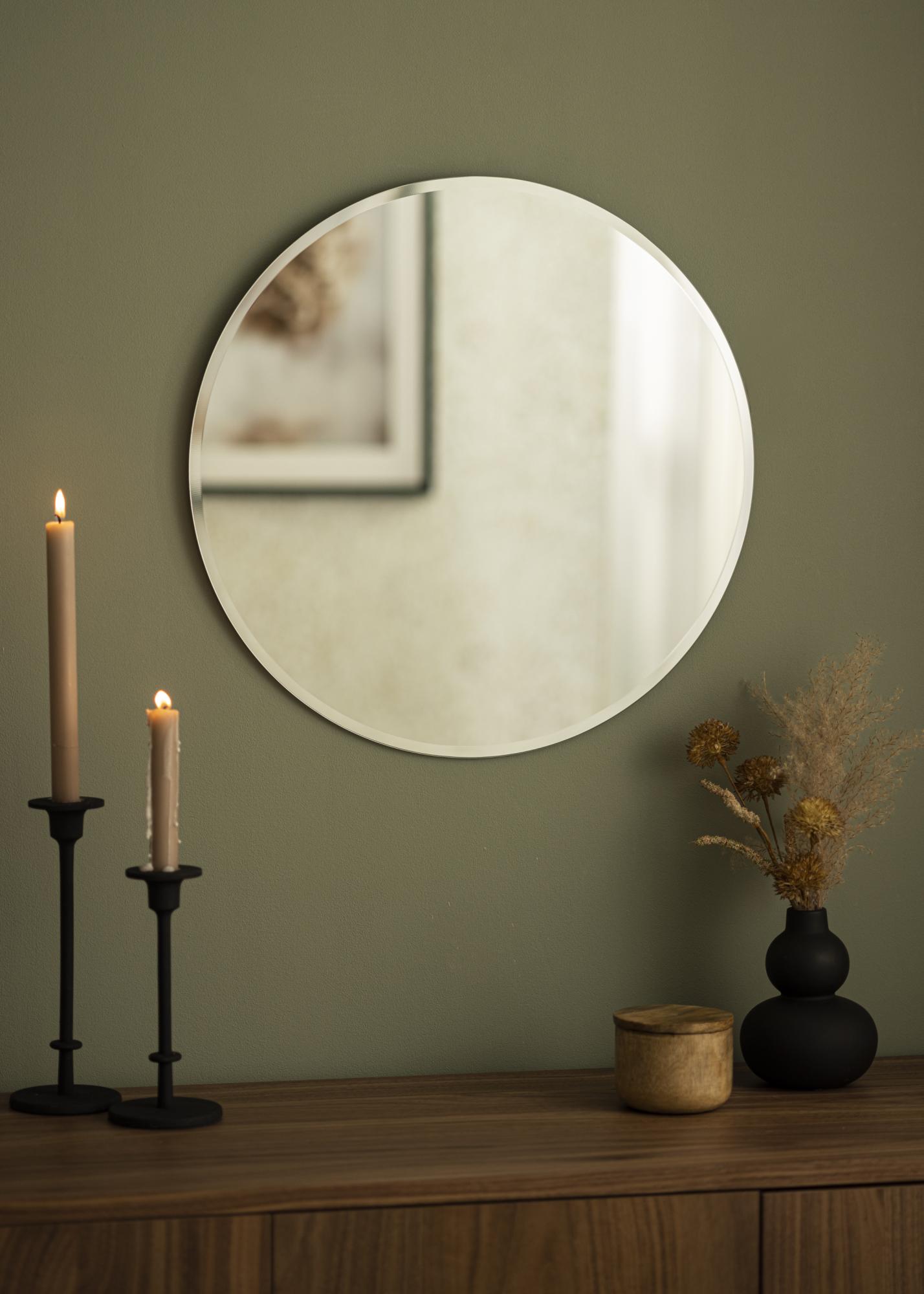 KAILA Okruglo Ogledalo Deluxe je dekorativno zidno ogledalo s prekrasnim brušenim rubom. Okrugli i elegantni oblik daju ogledalu moderan, ali ipak bezvremenski izgled koji odgovara i trendi i klasičnom domu.