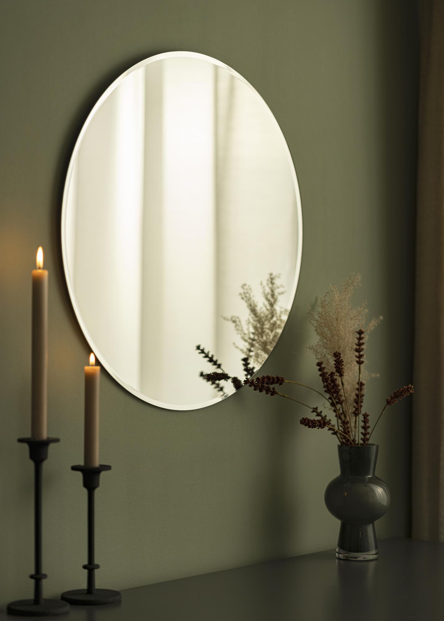 KAILA Okruglo Ogledalo Deluxe je elegantno okruglo ogledalo s prekrasno brušenim rubom koji mu daje ekskluzivan izgled. Ogledalo ima dizajn koji je moderan, ali istovremeno bezvremenski, što ga čini prikladnim za većinu domova i stilova unutarnjeg uređenja.