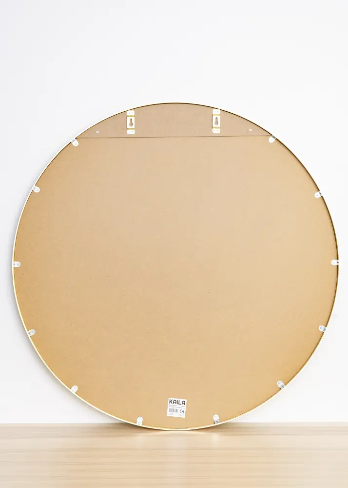 KAILA Round Mirror Edge Gold dolazi u nekoliko različitih veličina, a ovo ogledalo ima promjer od 110 cm. Stražnja strana ogledala opremljena je s dva zidna nosača za jednostavno i stabilno postavljanje na zid, a odgovarajući vijci i tiplovi su uključeni.