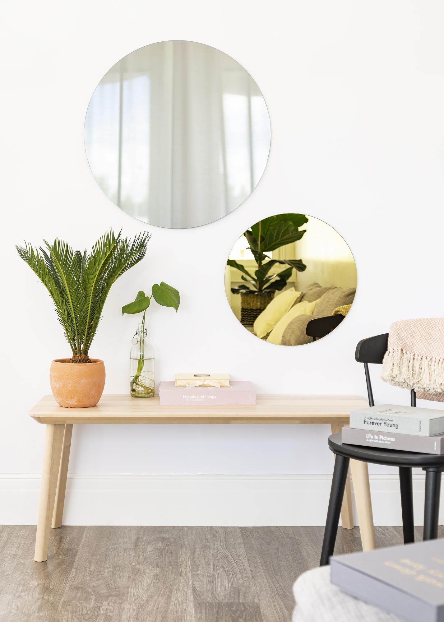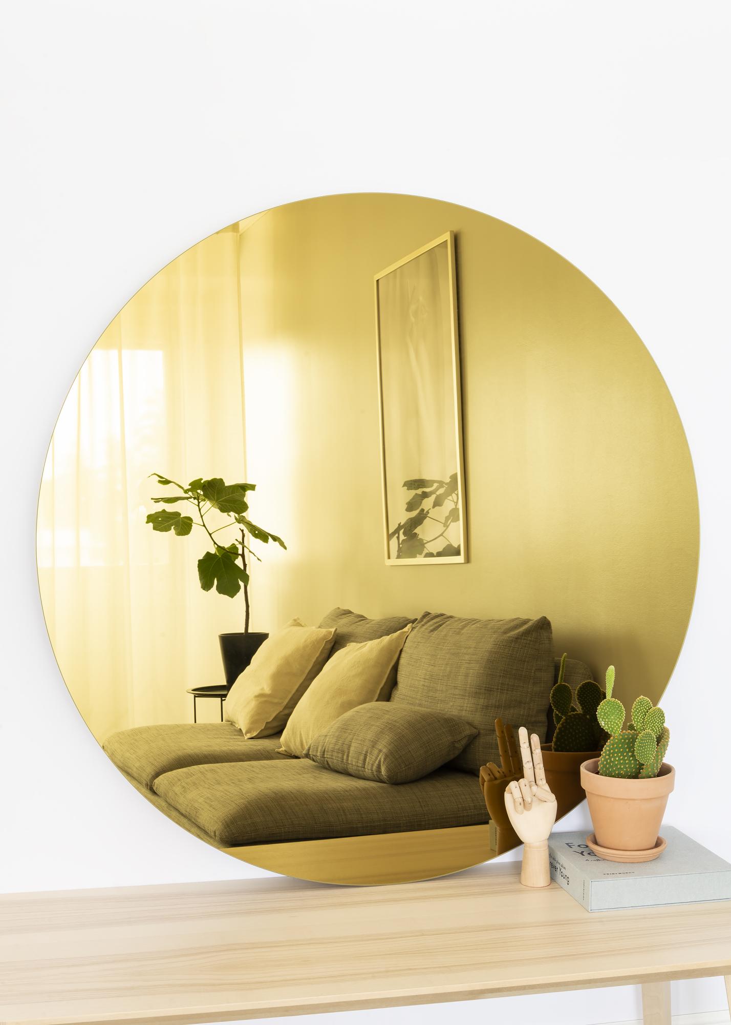 KAILA Okruglo Ogledalo Gold je elegantan dizajn kada je najbolji! Okruglo ogledalo je tanko i nema okvir, a ovaj stilizirani oblik u kombinaciji s ogledalom u zlatnoj nijansi daje ovom ogledalu ekskluzivan izgled. Okruglo ogledalo poput ovog stvara mekan i ugodan osjećaj u vašem domu, dok moderna zaokreta sa zlatnim staklom svjedoči o osjećaju za stil i detalje.