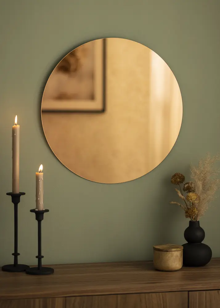 Ovo okruglo ogledalo ima elegantan i minimalistički dizajn koji se kombinira s prekrasnim staklom ogledala toniranim u roza zlato. Rezultat je vrlo dekorativno zidno ogledalo koje odgovara klasičnom i modernom domu. Okrugli oblik ogledala stvara nježan osjećaj u vašem domu, a staklo u roza zlato svjedoči o osjećaju za stil i detalje.