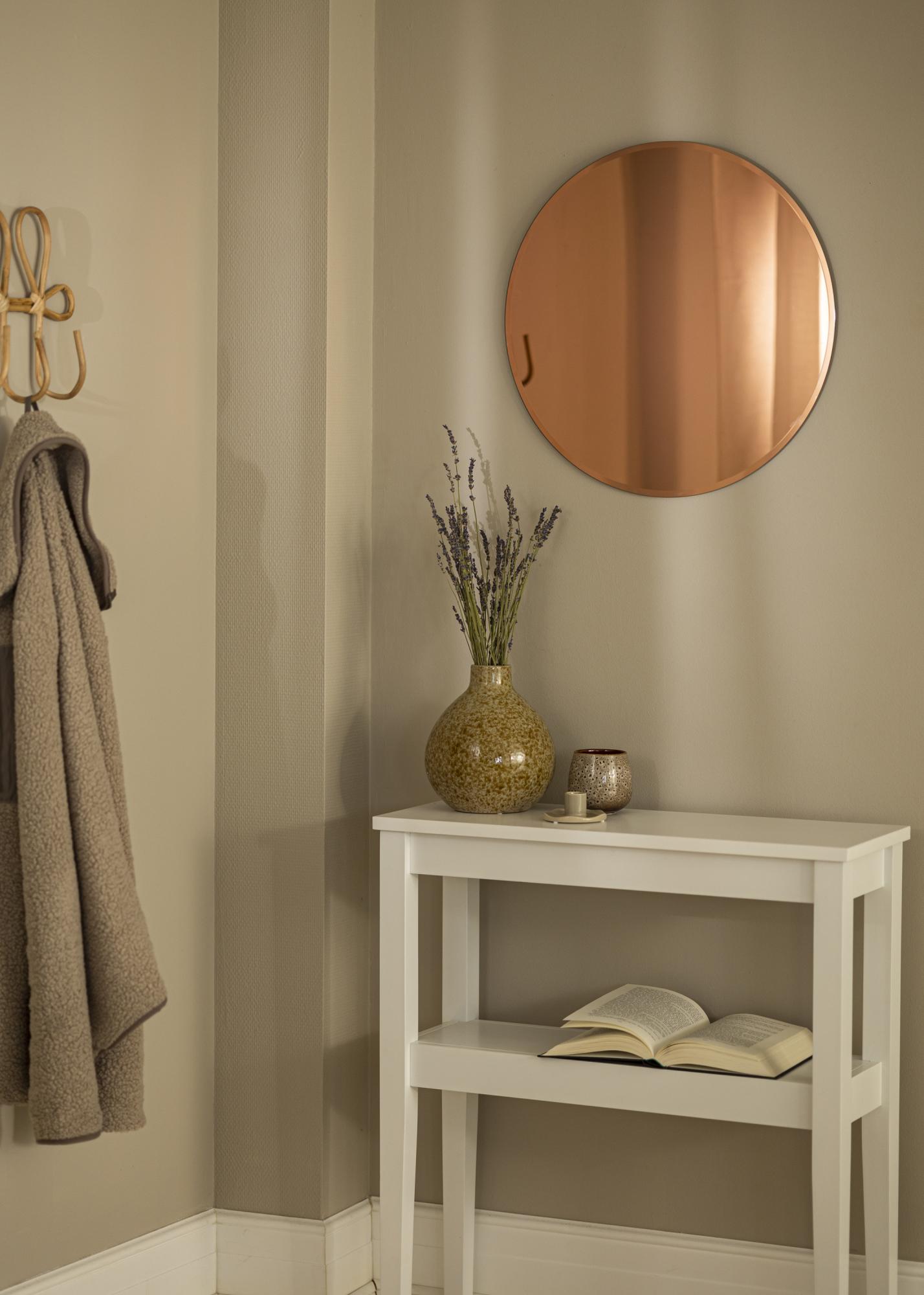 Rose Gold Deluxe je zidno ogledalo bezvremenskog dizajna, s modernim zaokretom u obliku tonaliziranog stakla ogledala. Topla nijansa ružičastog zlata stakla ogledala daje ekskluzivan i jedinstven izraz, koji se savršeno kombinira s elegantnim okruglim oblikom. Za dodatnu preciznost, ovo ogledalo također ima fasetirane rubove.