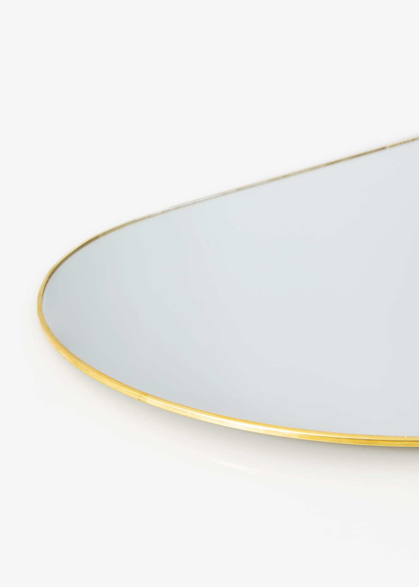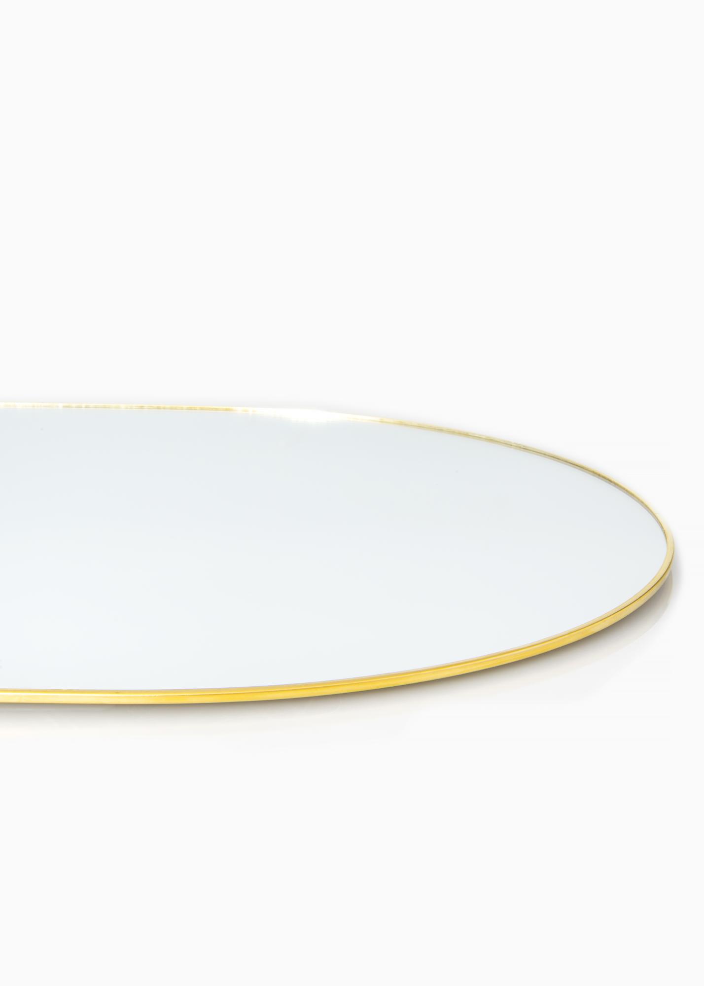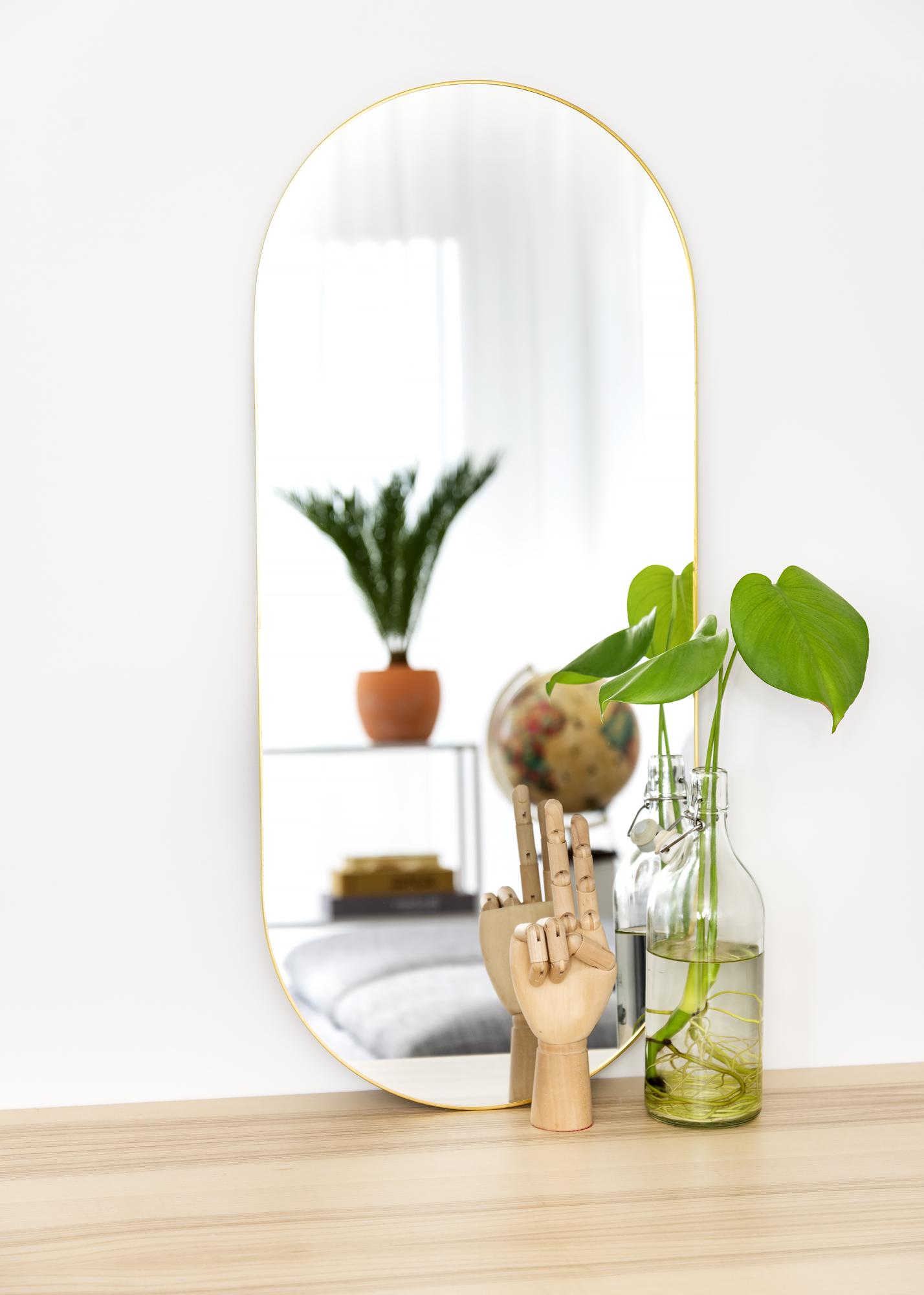 Ovo je vrlo dekorativno zidno ogledalo u elegantnom skandinavskom dizajnu iz KAILA. Ovalni oblik daje ogledalu mekan i elegantan izgled, koji dodatno naglaÅ¡ava tanki metalni rub u mesingu. To je ogledalo koje istovremeno izgleda moderno i klasiÄno, Å¡to ga Äini prikladnim za veÄinu domova i stilova ureÄenja.