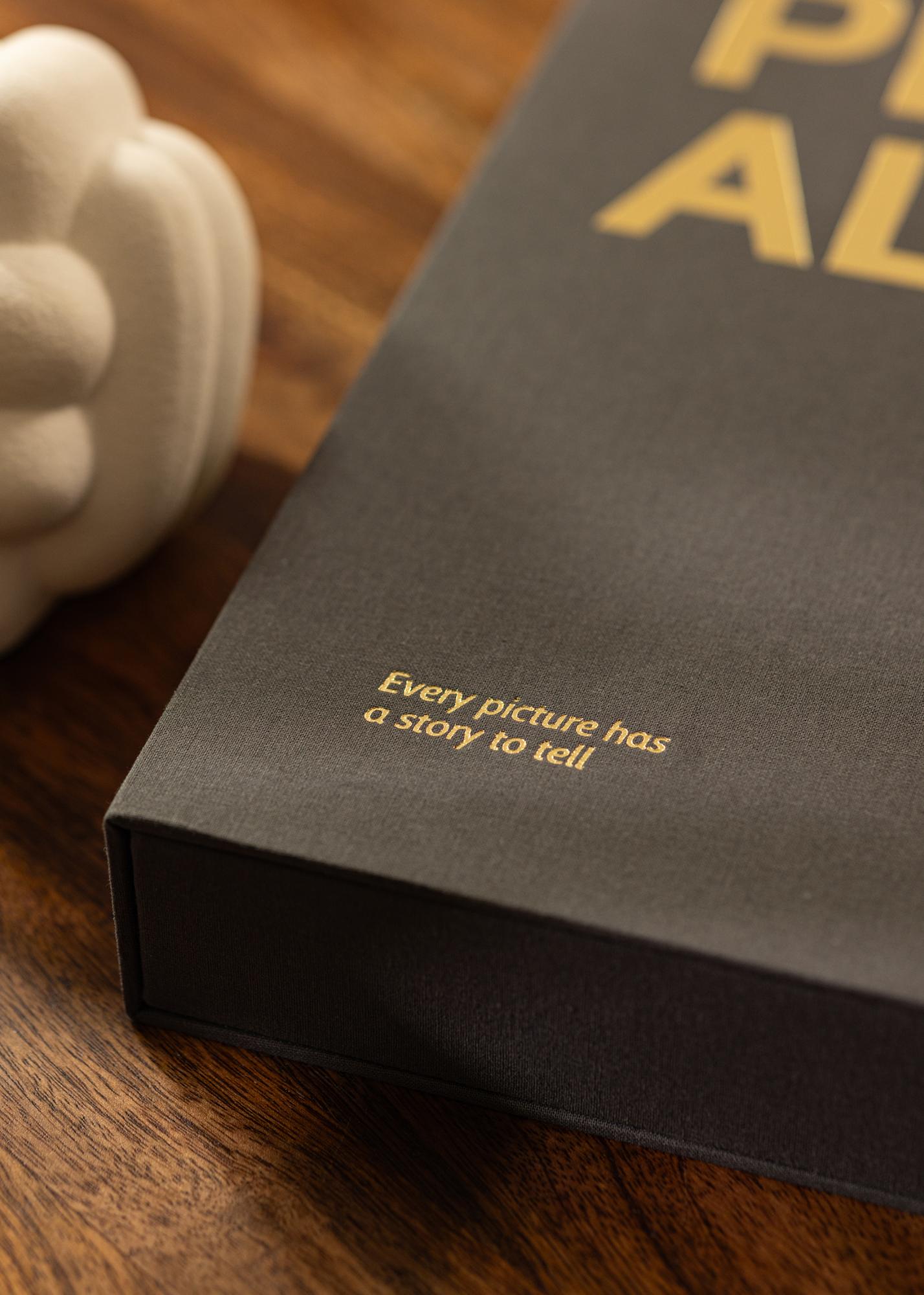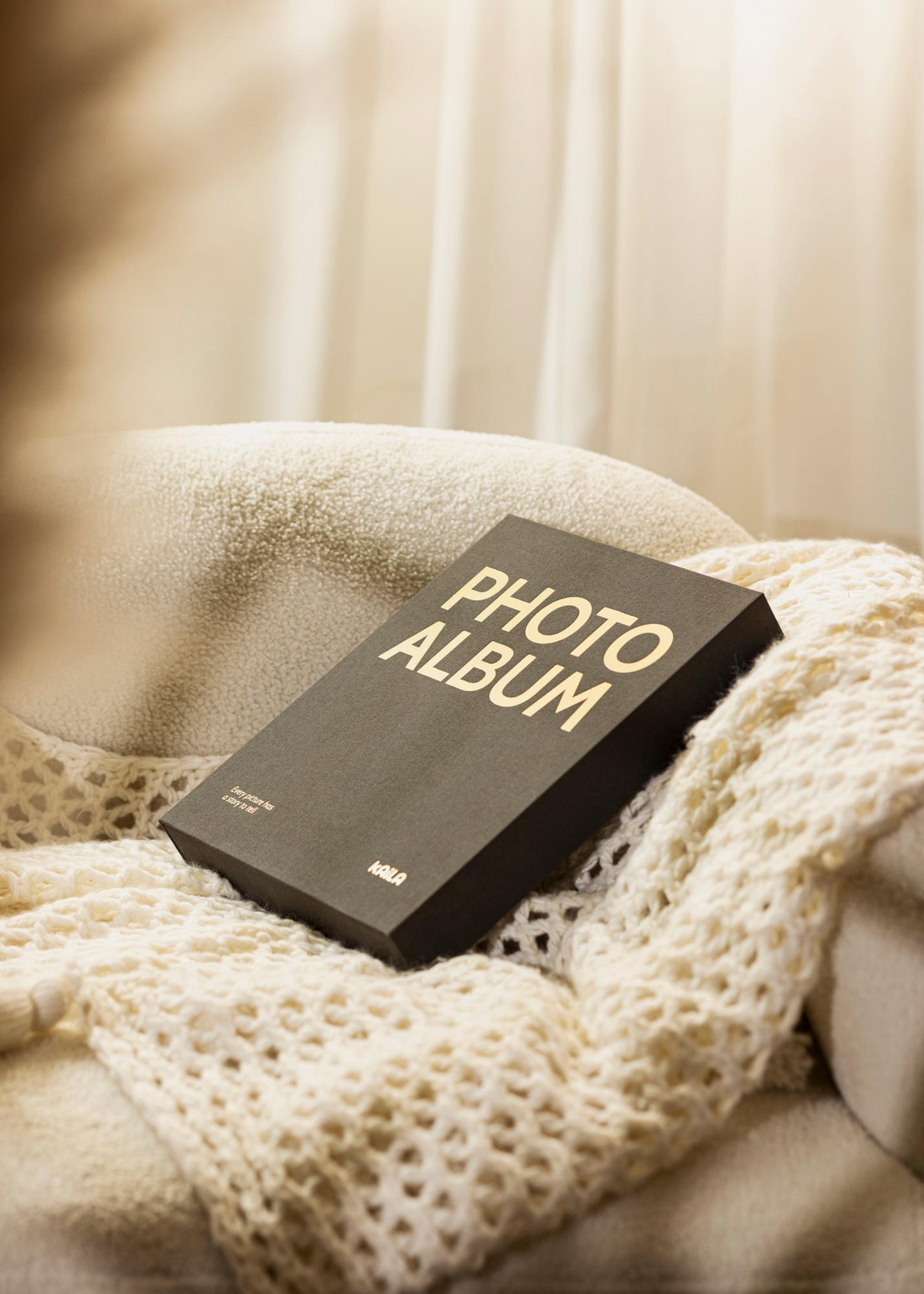 Ovo je fotoalbum za vas koji tražite album koji će čuvati vaše najljepše fotografske uspomene i koji će istovremeno biti lijep za imati izložen. Album je dizajniran kao Coffee Table Book, s modernim dizajnom koji postaje očita dekoracija na stoliću u dnevnom boravku ili na polici za knjige. Dizajniran je kao ekskluzivna kutija, s koricama od elegantnog crnog tekstila. Kada otvorite album, susrećete se s registratorom s 60 crnih stranica albuma (30 listova) koje možete ispuniti fotografijama iz lijepih trenutaka. Sami lijepite fotografije točno tamo gdje želite.
