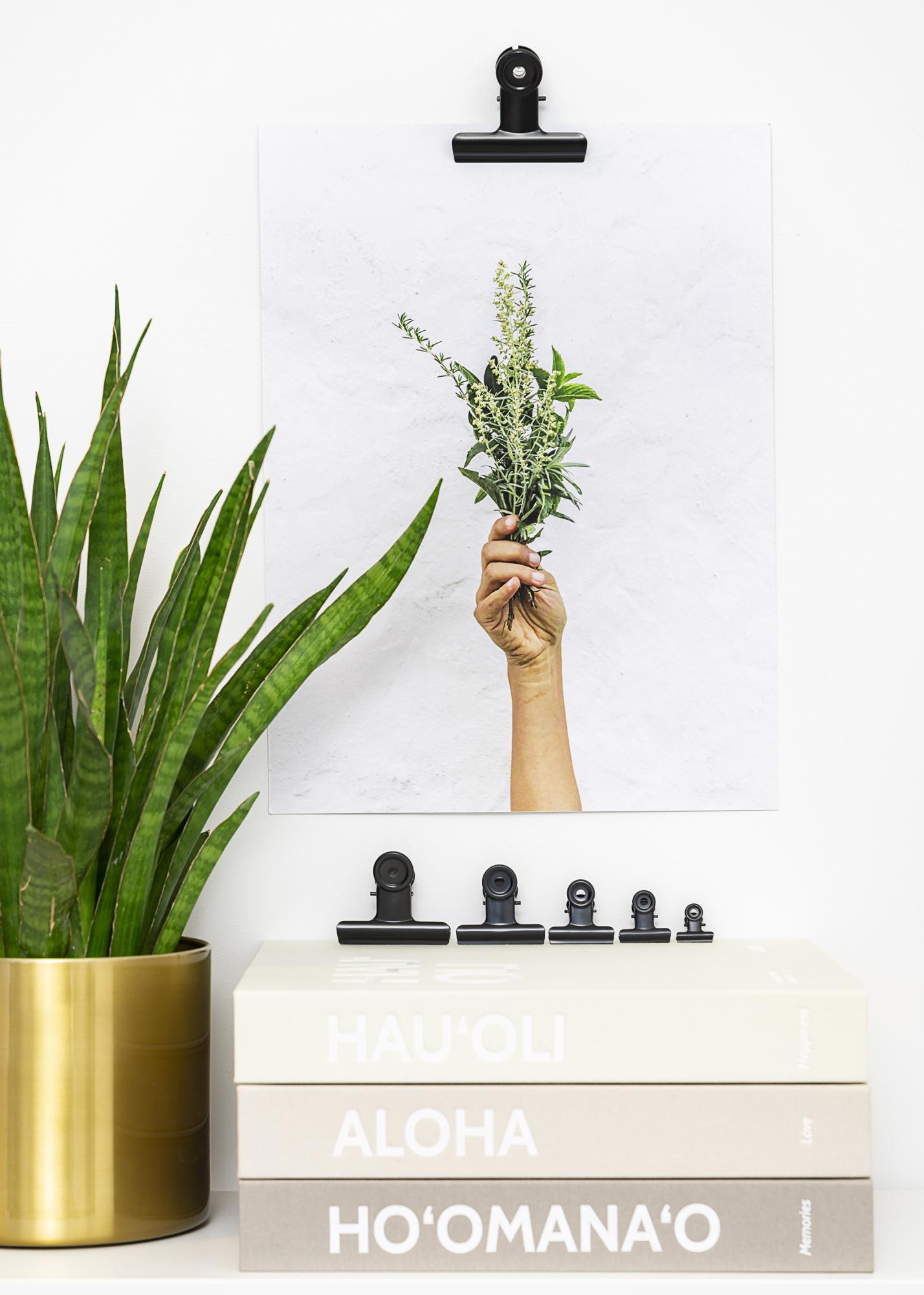 Ova crna metalna kopča ima elegantnu mat završnu obradu i daje vašim posterima i printovima šik i trendi izgled pri vješanju. Otvor kopče ima čvrst stisak koji omogućuje pričvršćivanje i najtanjeg papira, dok se također može koristiti za motive s nešto većom debljinom. Ako imate veliki poster koji želite objesiti, možete koristiti dvije kopče za postere. Dizajn metalne kopče je elegantan, a rupe na okruglom vrhu kopče olakšavaju i omogućavaju jednostavno vješanje na zid pomoću male čavle ili vijka.