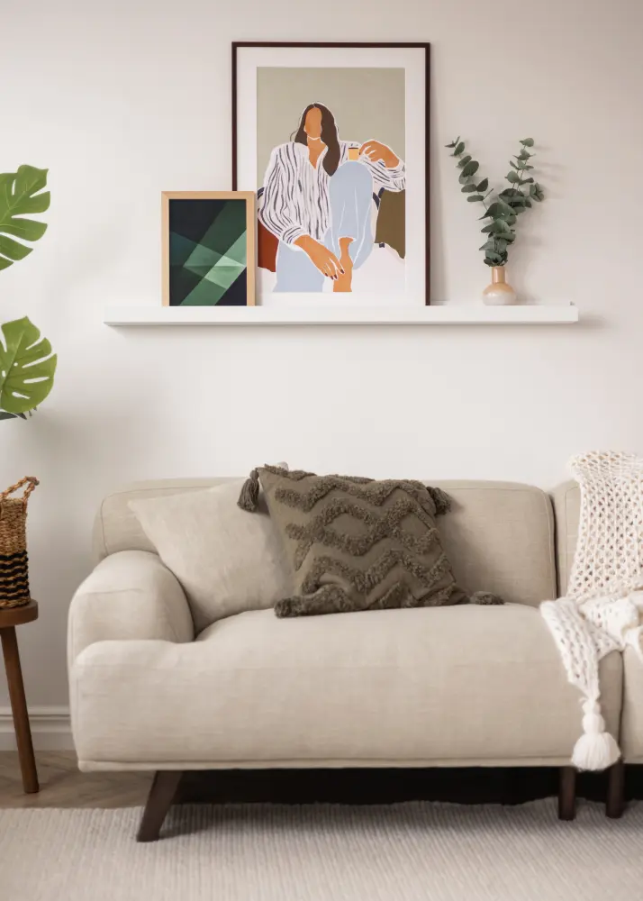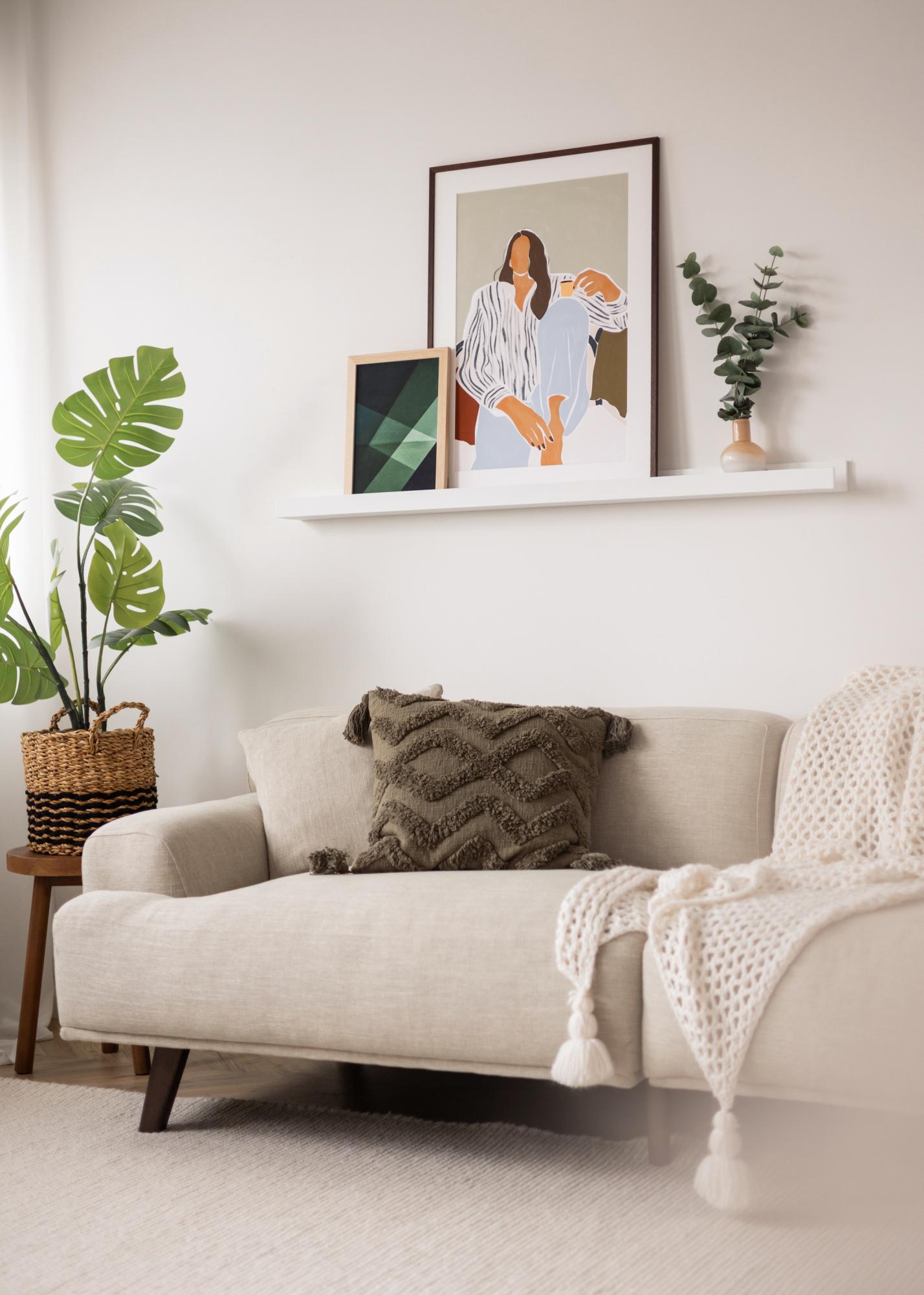 S praktičnom policom za slike možete jednostavno i elegantno izložiti i mijenjati svoje slike! Ova elegantna polica za slike izrađena je od MDF-a i obojena je bijelom bojom s prekrasnom, polusjajnom površinom. Dizajn je jednostavan s čistim, ravnim linijama i bezvremenskim minimalističkim osjećajem. U sredini police nalazi se izrezani utor koji podržava vaše slike i daje im savršen kut jer se oslanjaju na zid. Polica za slike također ima prethodno izbušene rupe, a u pakiranju su priloženi odgovarajući vijci i čepovi kako bi sve bilo još malo jednostavnije!