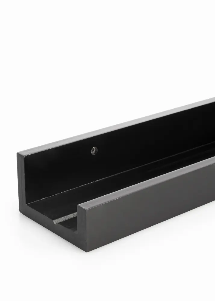 Ova crna polica za slike dostupna je u nekoliko različitih duljina, a ova varijanta ima duljinu od 90 cm. Radi lakšeg korištenja, polica za slike ima prethodno izbušene rupe, a odgovarajući vijci i čepovi dolaze u paketu.