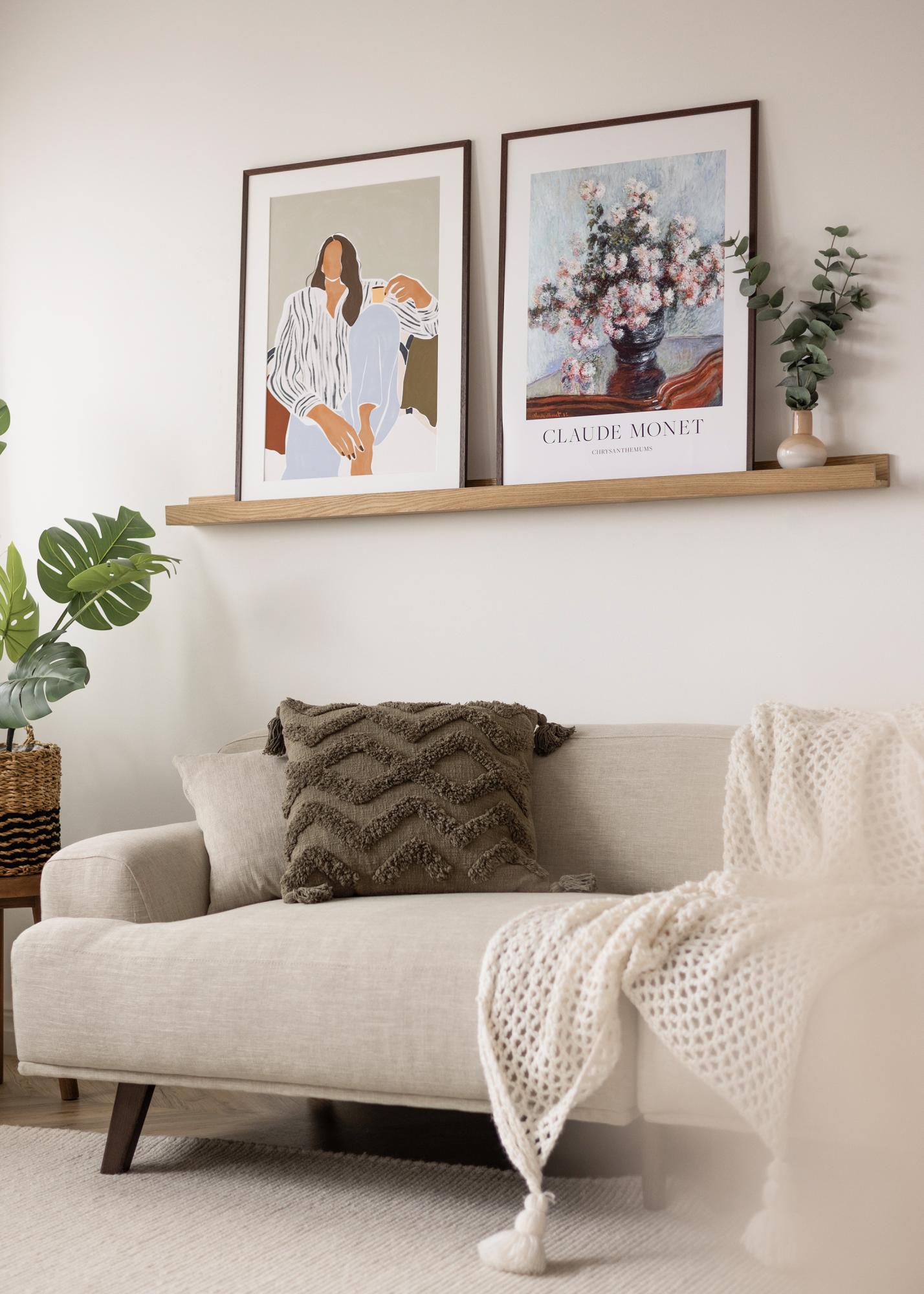 S praktičnom policom za slike izložite svoje slike na elegantan način i dobijete izvanredne mogućnosti za variranje vaše zidne umjetnosti. Ova polica za slike izrađena je od masivne hrastovine i ima elegantan dizajn s jednostavnim, ravnim linijama. Sama polica ima urezani utor koji pruža potporu vašim slikama i omogućuje im lijep kut gdje se naginju prema zidu. Polica za slike dostupna je u nekoliko različitih duljina, od kojih ova varijanta ima duljinu od 150 cm. Polica za slike također ima prethodno izbušene rupe, a za dodatnu jednostavnost priloženi su odgovarajući vijci i tiplovi.
