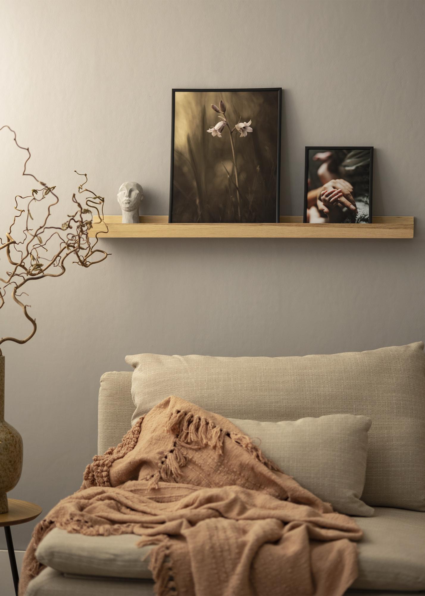 S praktičnom policom za slike elegantno ćete prikazati svoje slike i dobiti izvanredne mogućnosti za variranje umjetnina na zidu. Ova polica za slike izrađena je od masivnog hrasta i ima elegantan dizajn s jednostavnim, ravnim linijama. Sama polica ima urezani utor koji pruža potporu vašim slikama i omogućuje im da imaju lijepi kut dok su oslonjene na zid. Polica za slike dolazi u nekoliko različitih duljina, od kojih je ova varijanta duljine 90 cm. Polica za slike također ima prethodno izbušene rupe, a kako bi sve bilo još malo jednostavnije, uključeni su i odgovarajući vijci i čepovi.