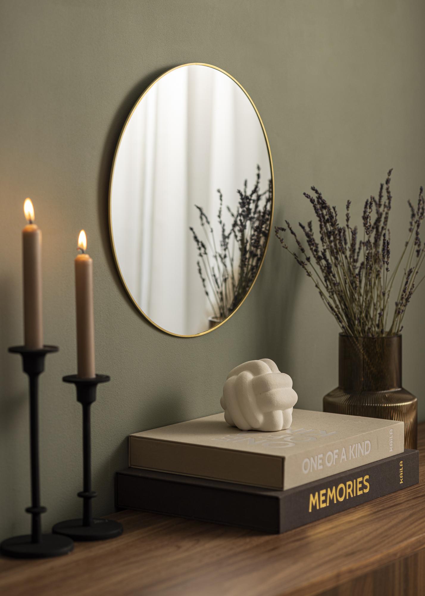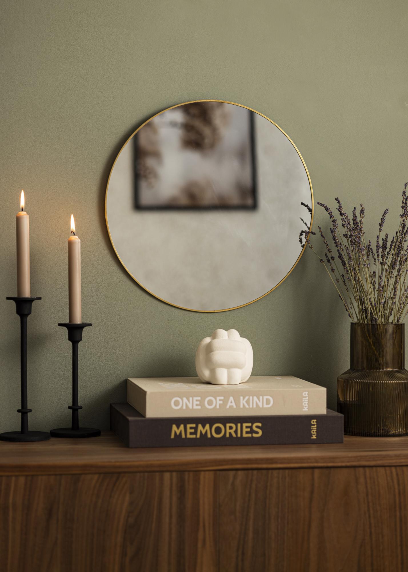 KAILA Thin Brass je okruglo zidno ogledalo s tankim okvirom od metala boje mesinga. Ovo ogledalo nije samo funkcionalno – također je prekrasan detalj unutarnjeg uređenja. Postavite ga na zid u bilo kojoj prostoriji kako biste joj dali luksuzni i ugodan osjećaj. Ogledalo ima zidne učvršćivače. Ogledalo se jednako dobro uklapa samostalno na zidu kao i s drugim zidnim ukrasima za elegantnu cjelinu.
