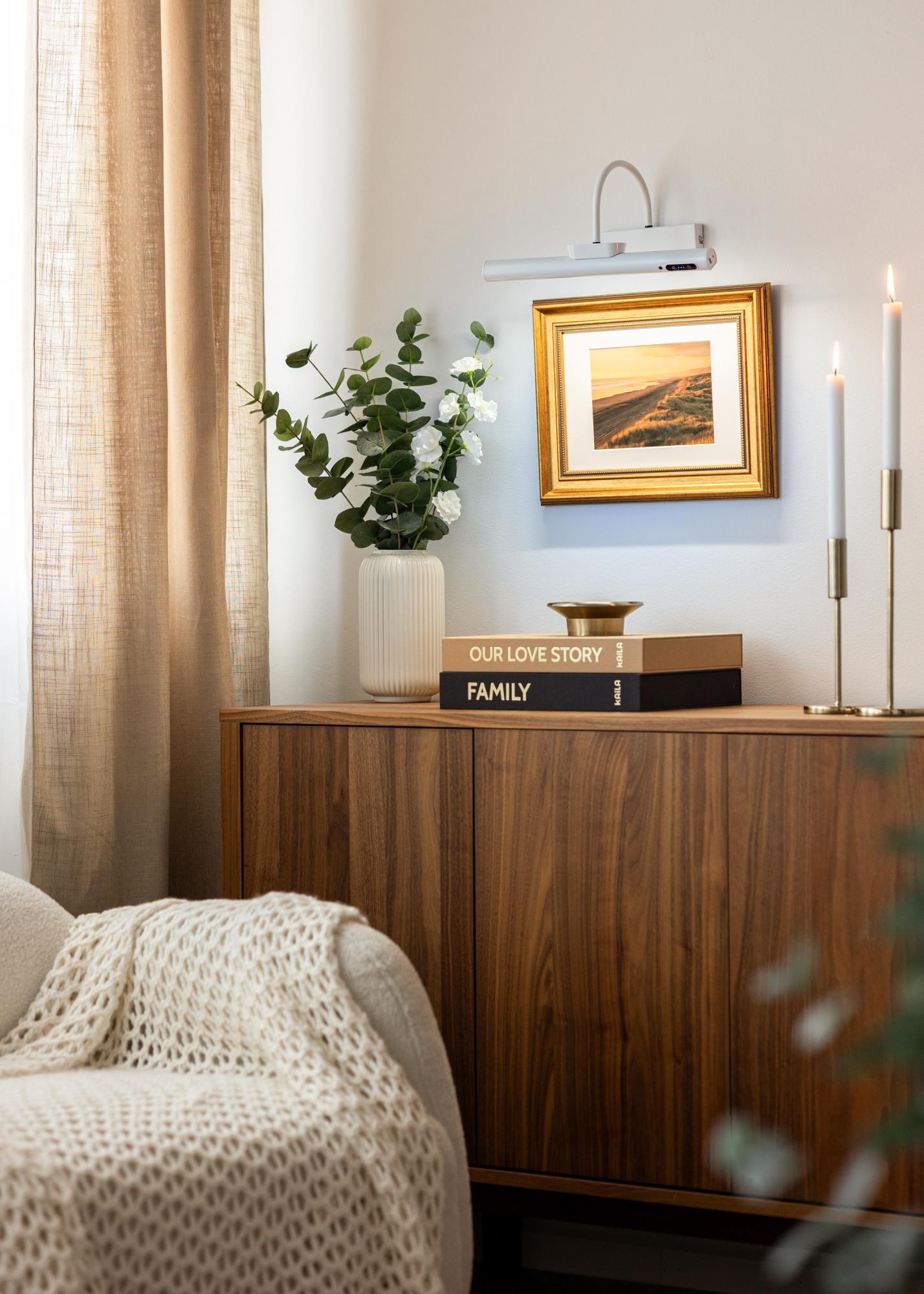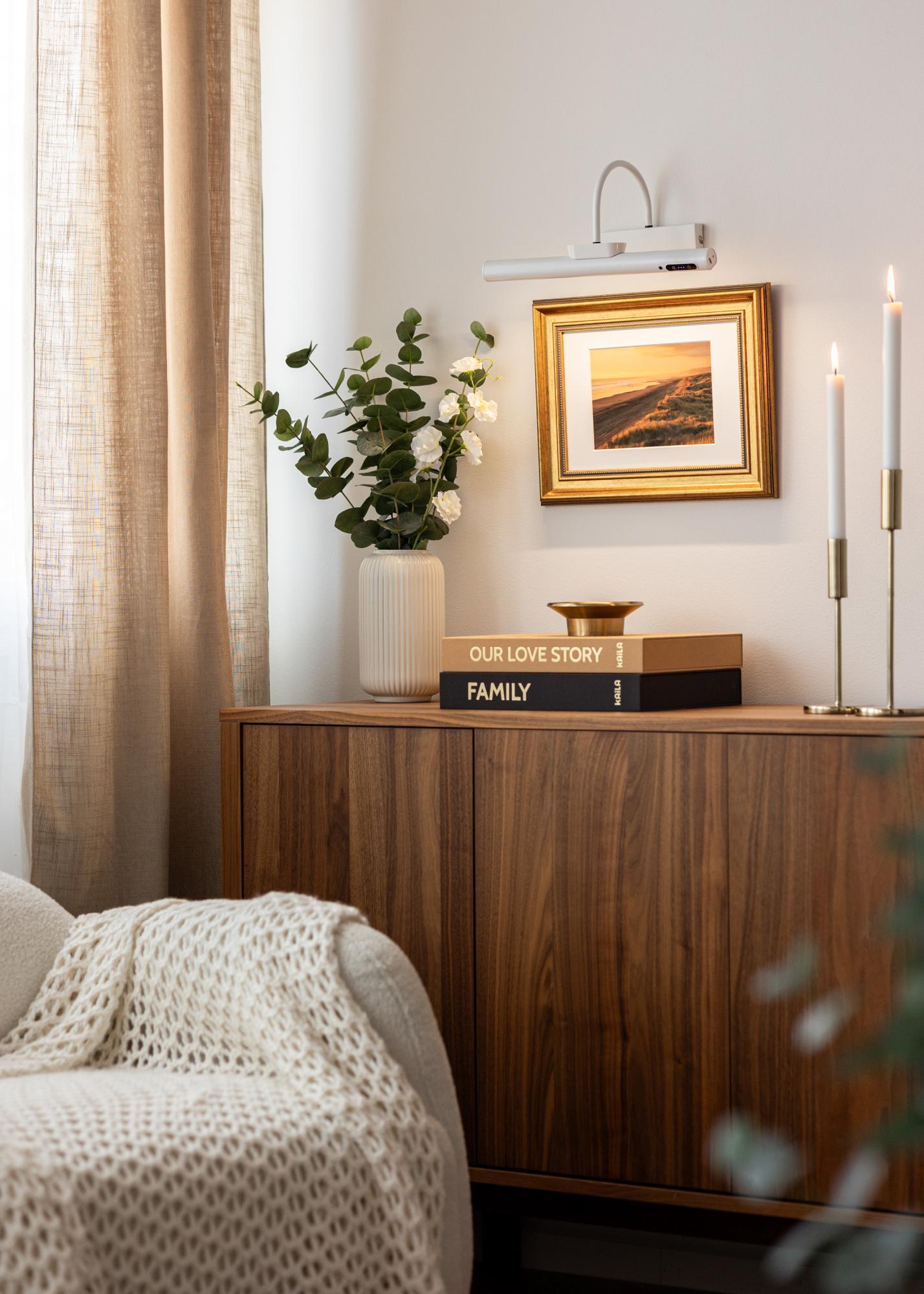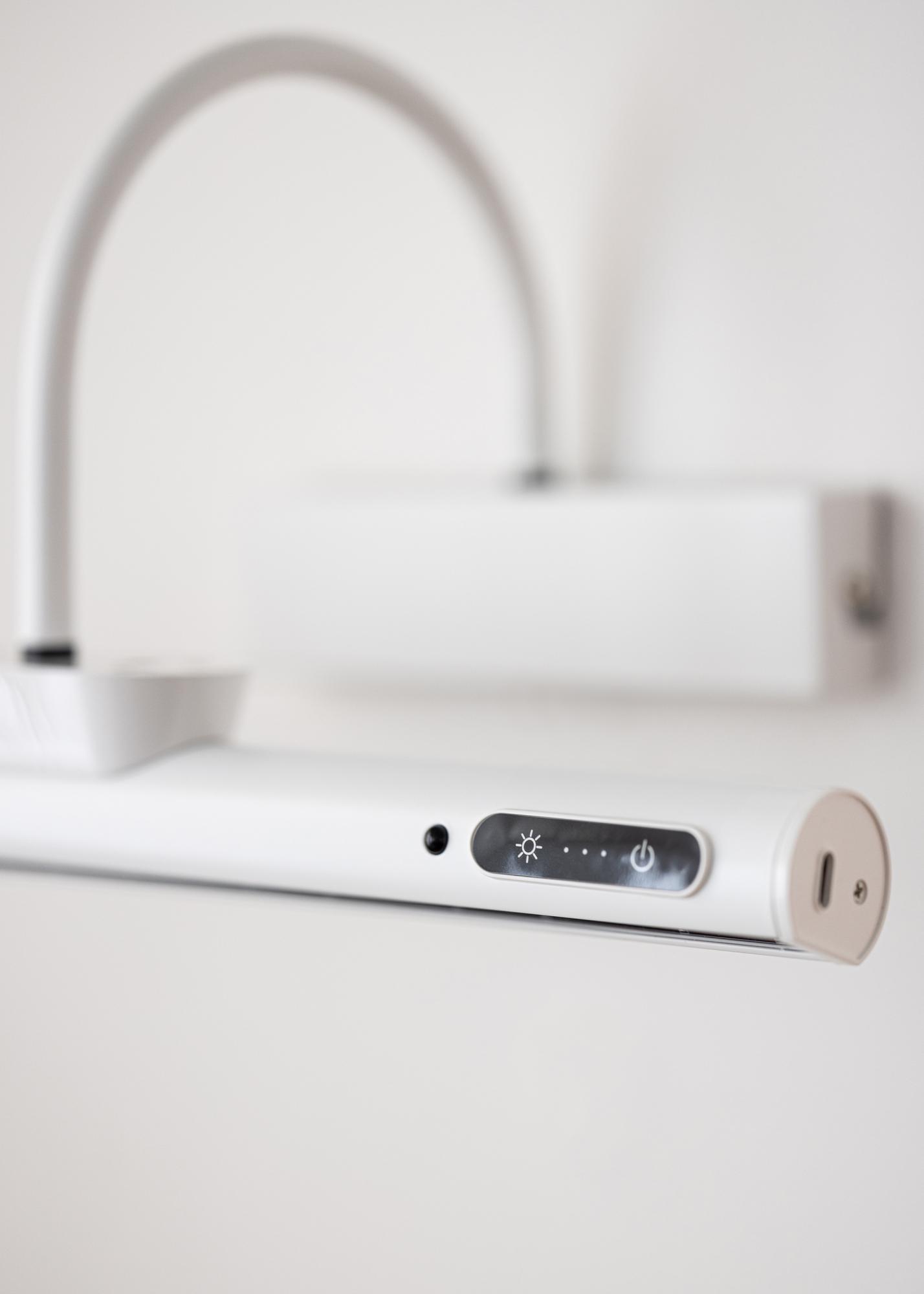 Ova baterijska rasvjeta za slike u bijelom dizajnu je praktična i elegantna. S mogućnošću izbjegavanja vidljivih kablova, možete je postaviti točno tamo gdje je potrebna kako biste istaknuli svoje umjetnine na najbolji mogući način. Rasvjeta ima LED izvor svjetlosti koji pruža ugodno svjetlo i može se prilagoditi u tri različite temperature boje (3000K, 4000K, 6000K), ovisno o tome što je najbolje za vašu umjetninu i okolinu.