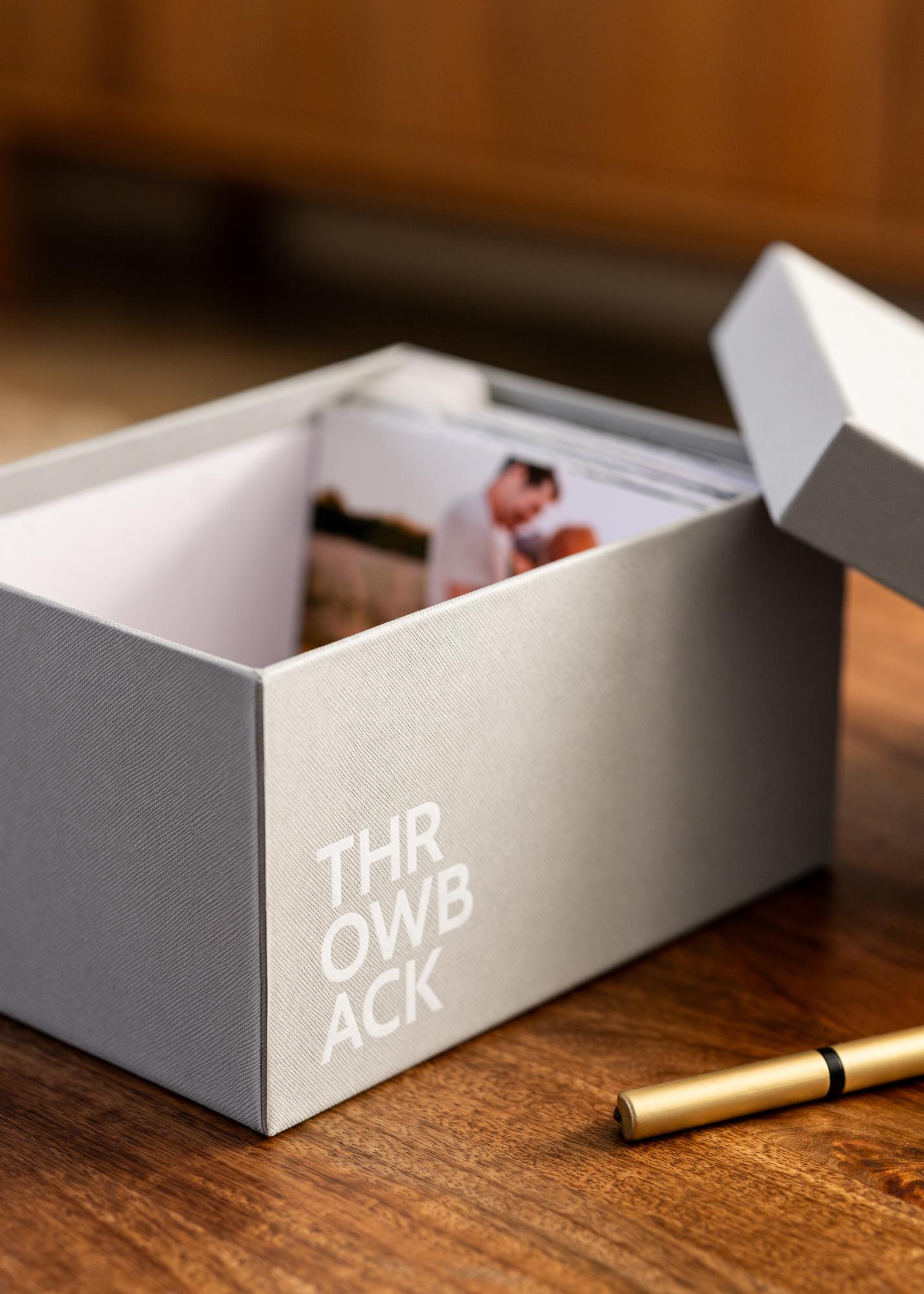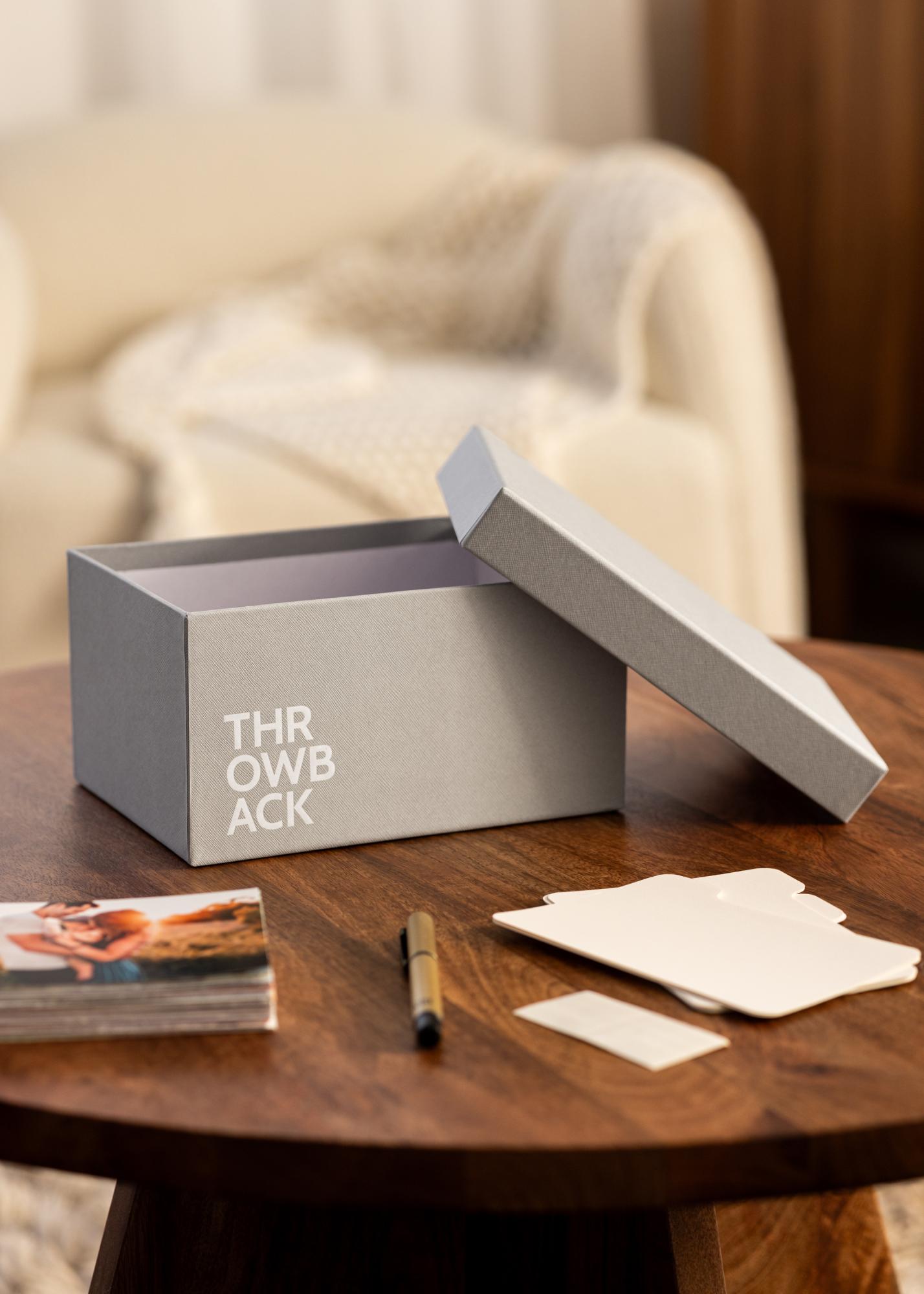 KAILA Throwback Photo Box je elegantna i praktična fotokutija u elegantnoj sivoj nijansi. Može pohraniti do 700 slika veličine 10x15 cm i savršena je za organiziranje i očuvanje vaših omiljenih uspomena. Dekorativno i funkcionalno rješenje za vas koji želite imati svoje slike skupljene na elegantan način.
