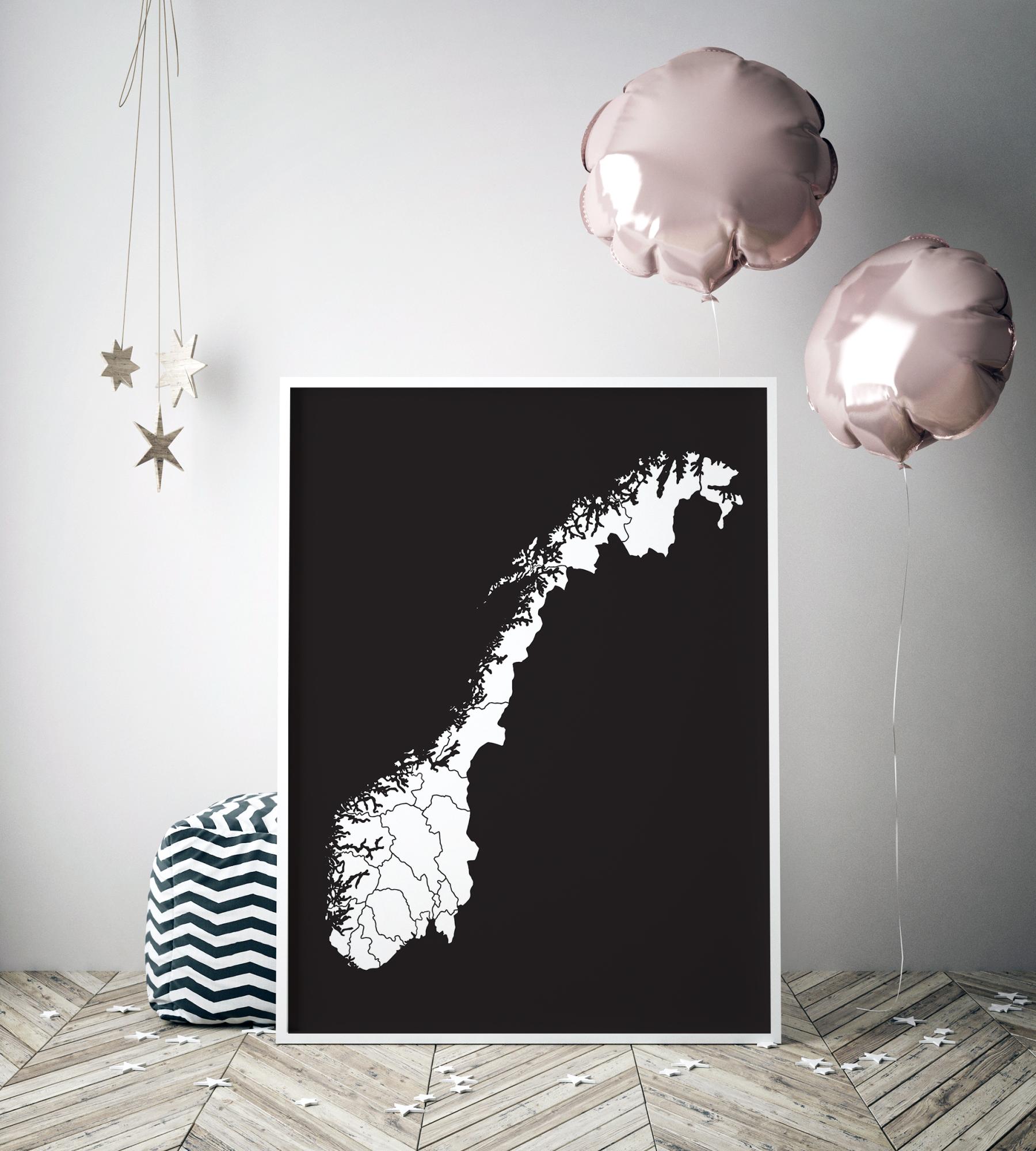 Neka vaše tople osjećaje prema Norveškoj odražavaju u vašem interijeru! Ovdje imamo elegantnu grafičku kartu zemlje koja je zajamčeno lijepa na zidu! Karta je dostupna u bojama plava, siva, zelena, ružičasta, crna s bijelom pozadinom, bijela s crnom pozadinom te u duginim bojama. Odaberite između 8 različitih veličina i slobodno je upotpunite odgovarajućim okvirom!