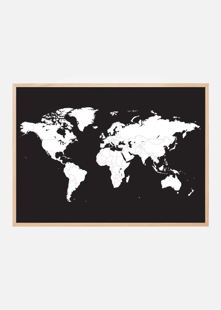 Karta svijeta Bijela s crnom pozadinom Plakat