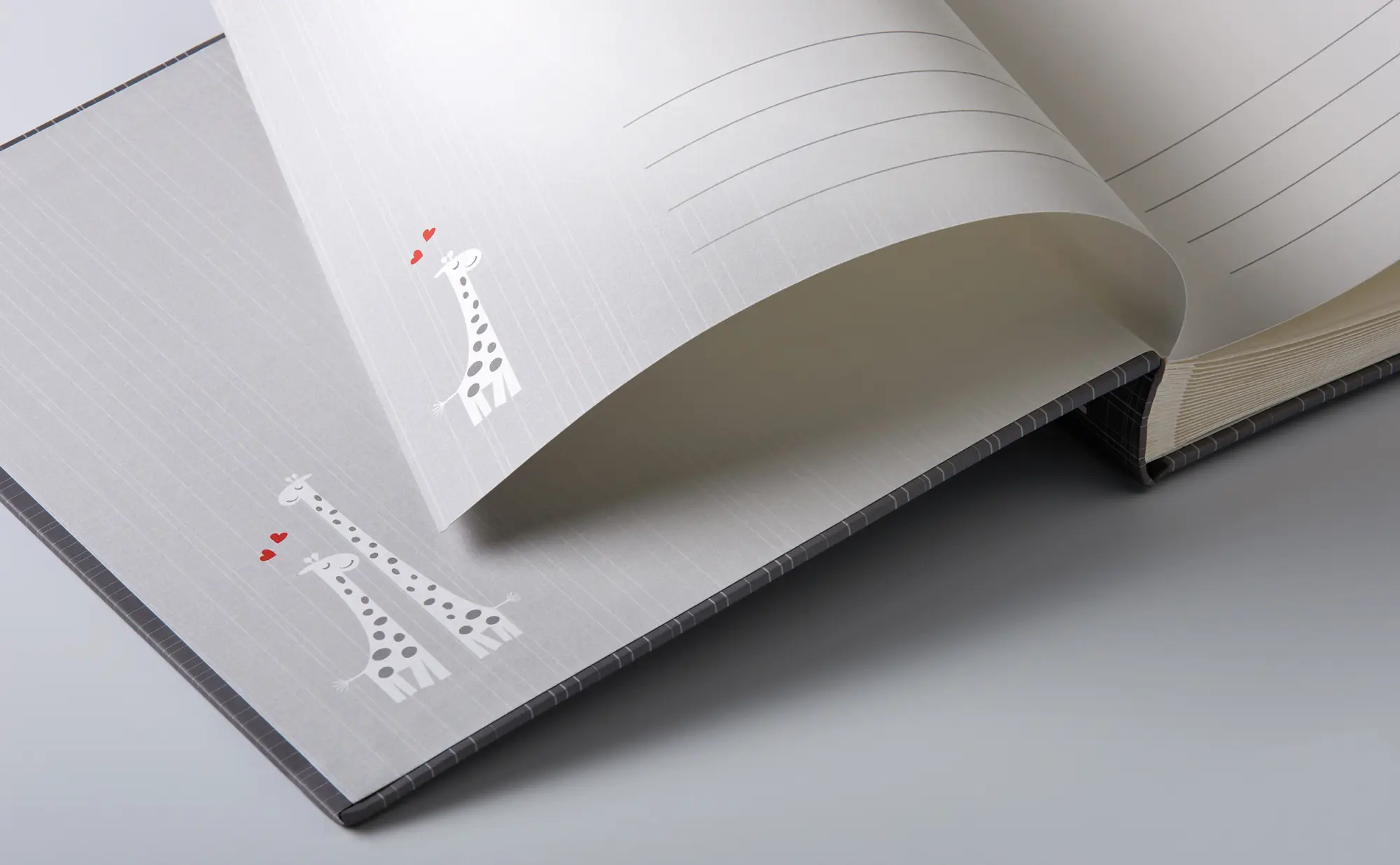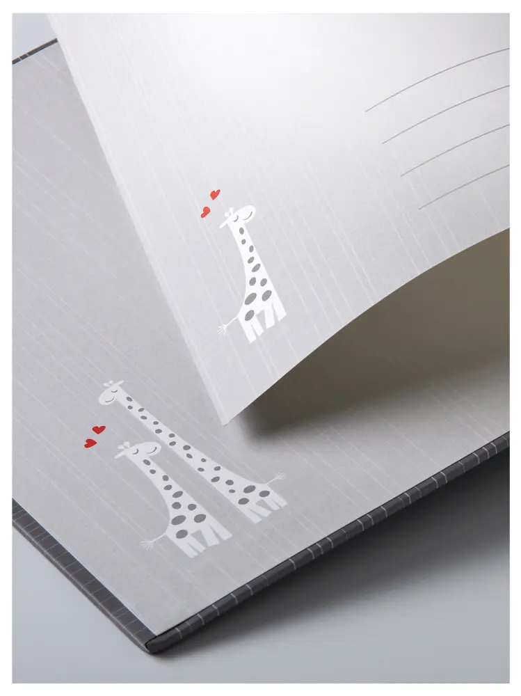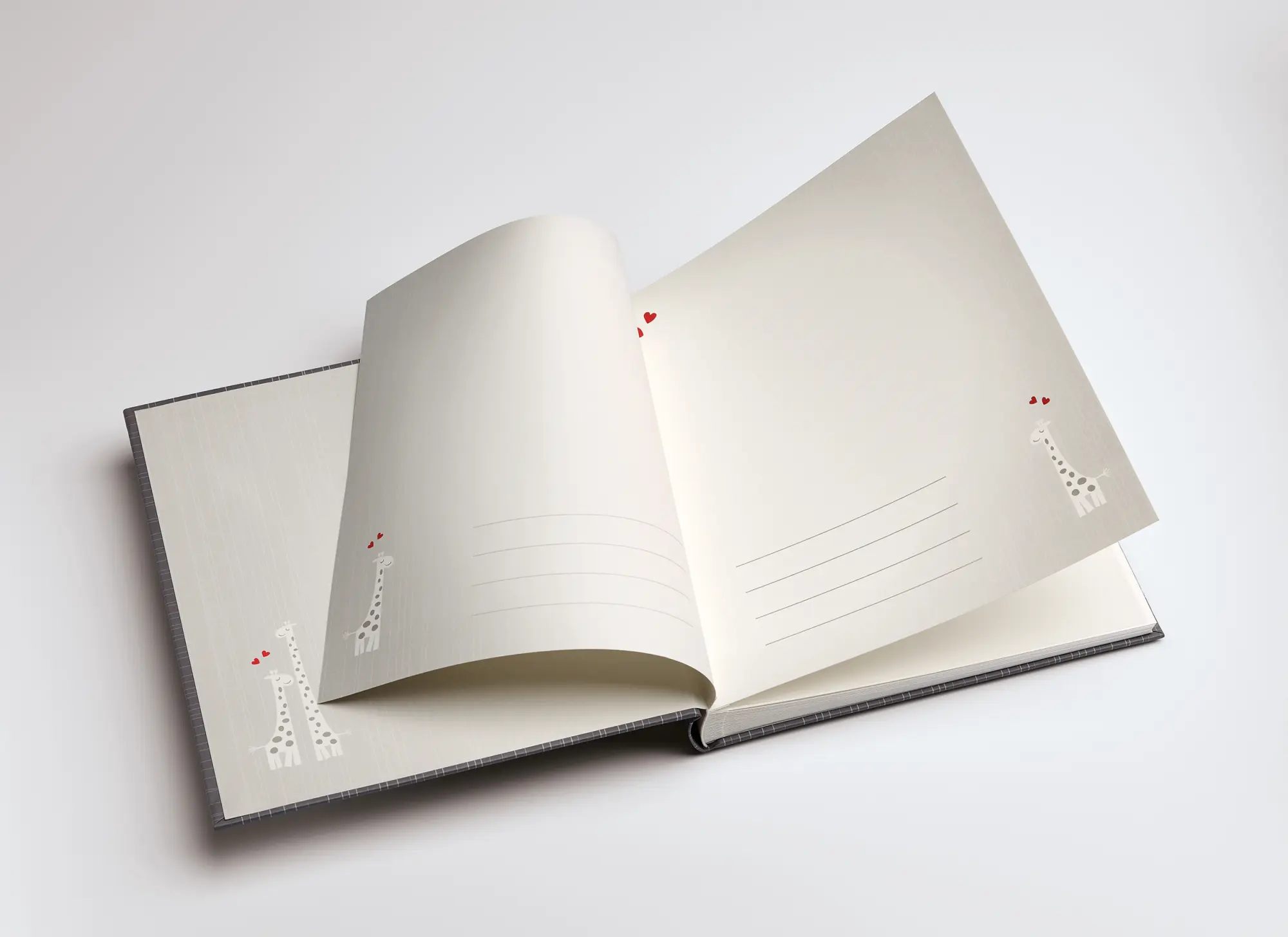 Ovaj album uvezan u knjigu ima sivobijelu prednju stranu s printom žirafe. Prva stranica takoÄer je ukraÅ¡ena slatkim žirafama i ima prostor za tekst.