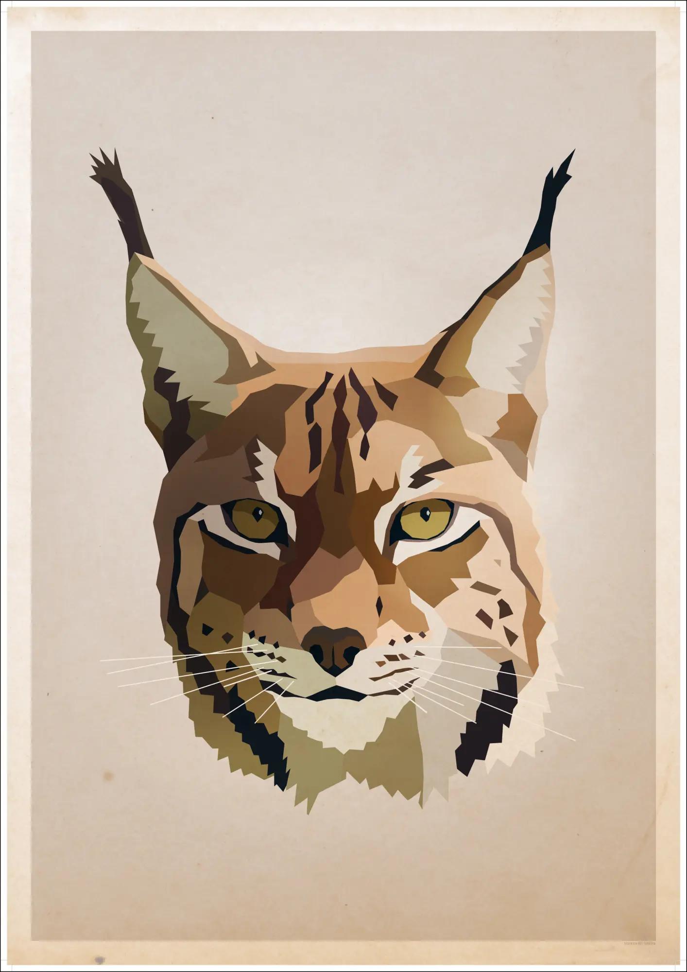 Intenzivan poster u pastelnim bojama s prekrasnom risom. Na svijetloružičastoj pozadini, oči životinje predstavljaju pažljiv, ali još uvijek dominantan pogled. Različite smeđe i zelene pastelne boje lijepo se stapaju u risove oči.