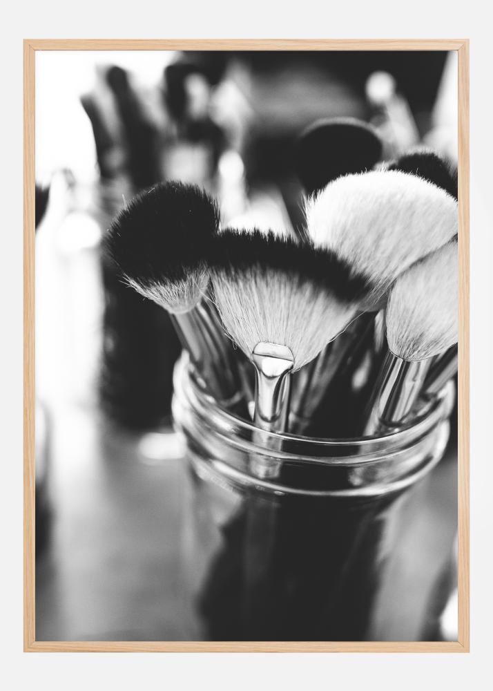 Umjetnički ali zabavan ispis staklene posude pune kistova za šminkanje. Ovaj upečatljiv crno-bijeli poster prikazuje nekoliko kistova različitih veličina. Osjetite koliko su mekani ovi kistovi dok vješate ovaj ispis na zid svoje spavaće sobe.