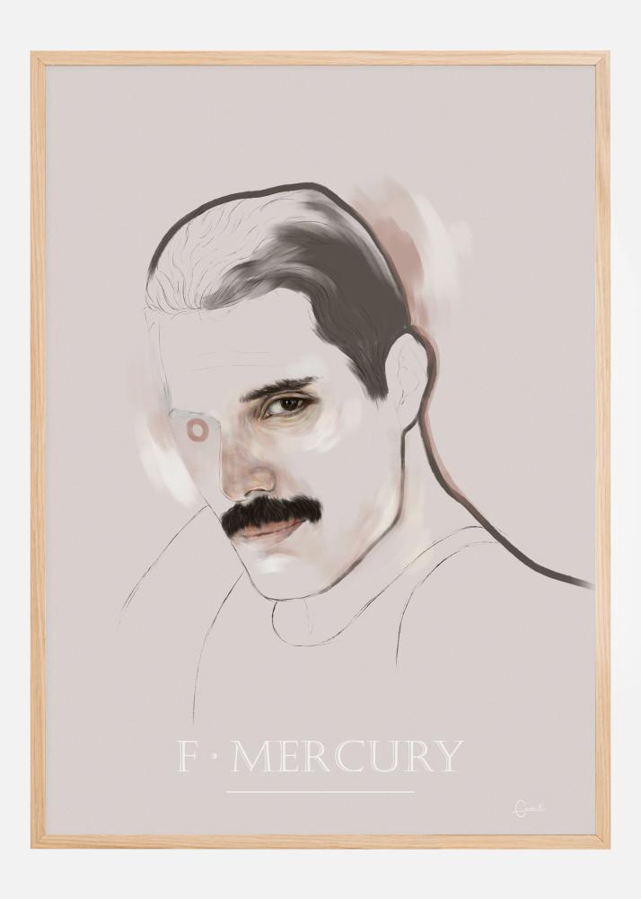 Impresivan portret Freddieja Mercuryja na svijetloružičastoj pozadini. Njegovo lijevo oko privlači vašu pažnju, dok je desno oko zamijenjeno prstenom. Njegovi smjeli crni brkovi i ugljenocrna kosa su glavne značajke ovog upečatljivog postera. Snažni potezi crtaju konture njegove glave i ramena. Čujte glazbu dok vješate ovaj portret u svom domu.
