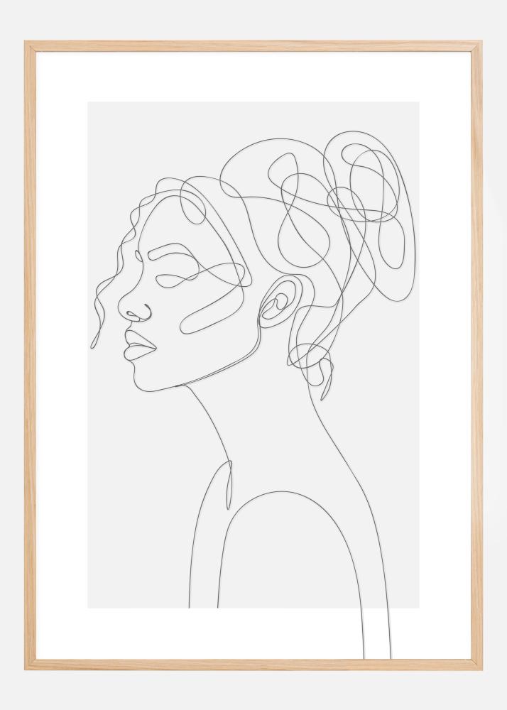 Ovo je impresivan poster s crtanom ženskom bistom koja gleda ulijevo na platnu. Njezina kovrÄava kosa je podignuta u Ävor na vrhu glave. Svaka linija vjeÅ¡to prelazi u sljedeÄu, a da ikada ne ostavi dojam kao simbol modelovog života. PoÄetak, kraj. Prekrasan ali misteriozan otisak za svaki ambijent.