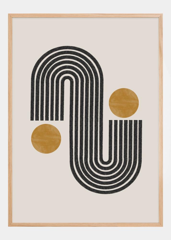 Otkrijte svijet elegantne ljepote s naÅ¡im posterom koji istiÄe kontraste kroz oblik i boju. Ovaj print prikazuje dinamiÄan crno-bijeli uzorak linija koje tvore nježno zakrivljeni oblik, uravnotežen s dva kruga boje okera koji daju topao i zemljani osjeÄaj. Ovaj minimalistiÄki, ali efektivan dizajn inspiriran je estetikom sredine proÅ¡log stoljeÄa i nudi osjeÄaj mira i ravnoteže u svakom prostoru u kojem se nalazi.