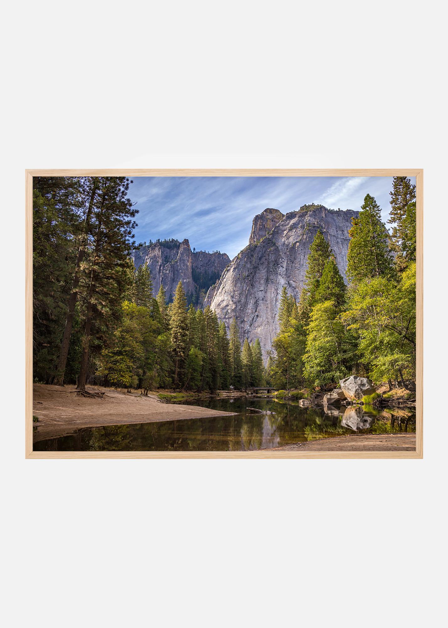 Prizor s visokim liticama i tihom Å¡umom koja se odražava na mirnoj vodenoj povrÅ¡ini. GovoreÄa tiÅ¡ina koja stvara mirni krajolik. Zajedno s okvirom od prirodnog materijala, slika se uklapa u sve vrste interijera i shema boja. Objesite fotografiju zajedno s drugim slikama prirode ili odaberite veÄu veliÄinu kako bi djelovala kao samostalna slika.