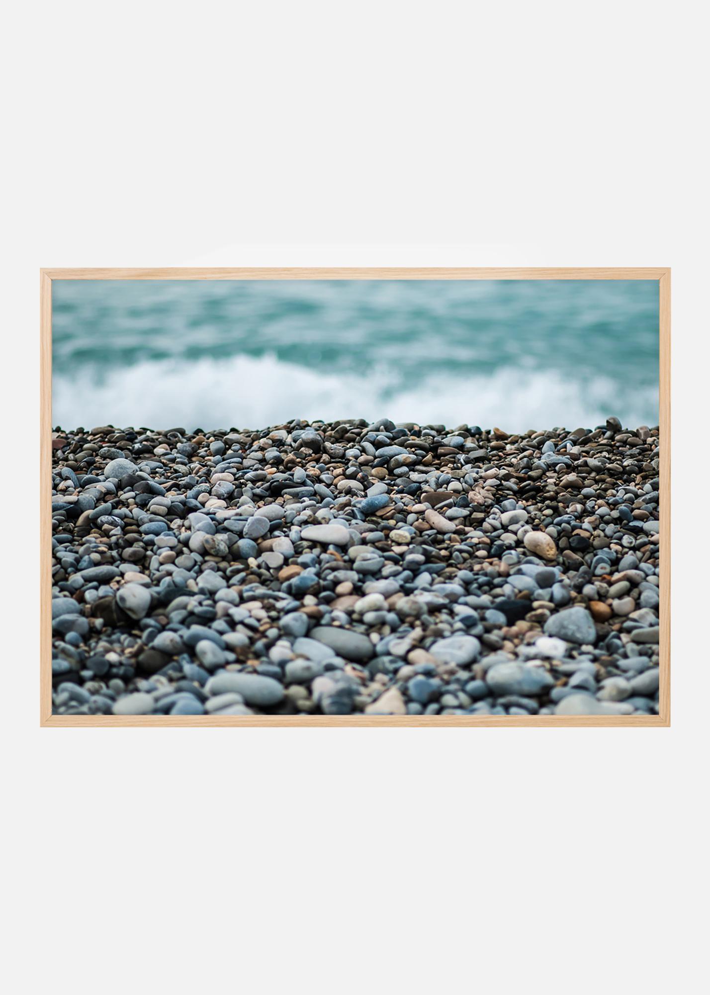 Čuj zvuk valova mora s ovog postera s prekrasnom kamenitom plažom u prvom planu. Kratka dubinska oštrina stvara zanimljivu sliku koja privlači oči u sliku. Pronalaziš li neki uglađeni komad stakla među kamenjem? Sivo-plava paleta boja odlično se slaže s uskim okvirom na svijetlom zidu, po mogućnosti s morskim dodacima.