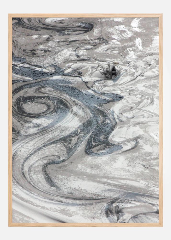 Impresivna fotografija riječnog mulja koji formira površinu nalik čokoladi. Mekani crni, bež i bijeli vrtlozi savršeno se stapaju i stvaraju fantazijski uzorak. Za supermoderan dnevni boravak ovo je savršen poster za objesiti na bež zid.