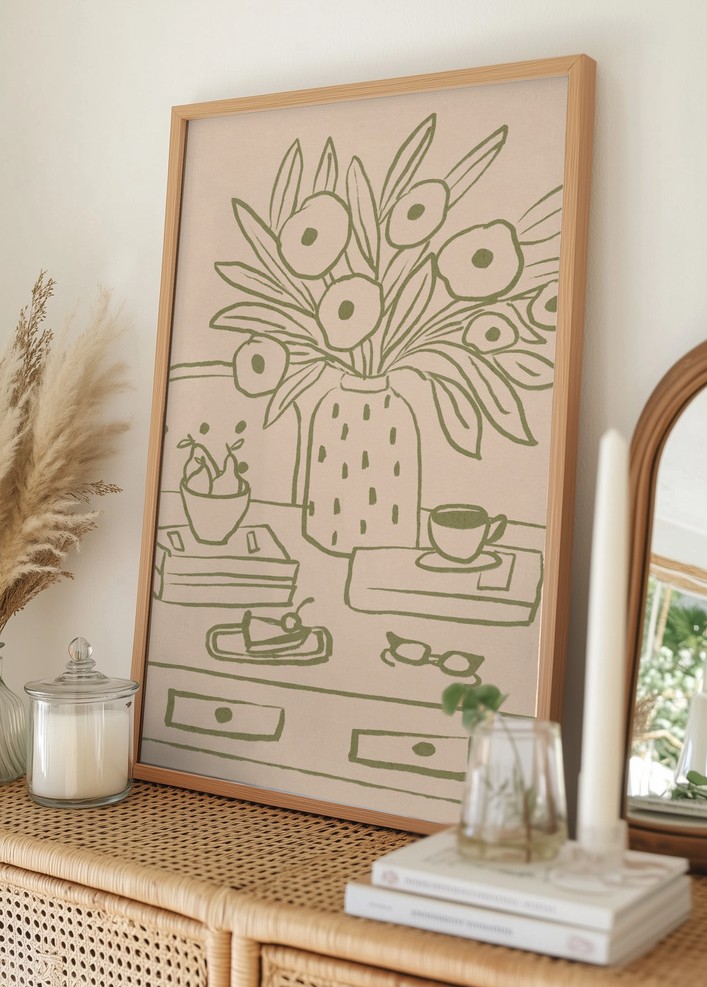 My Desk Still Life Line Art Plakat (21x29.7 cm (A4))