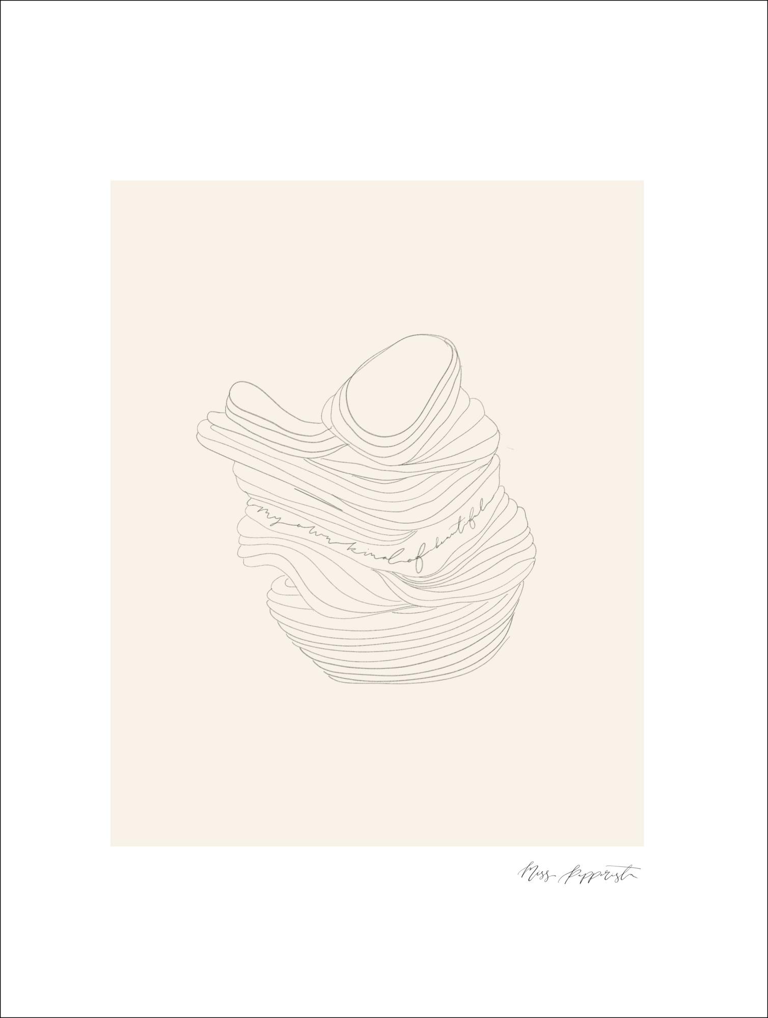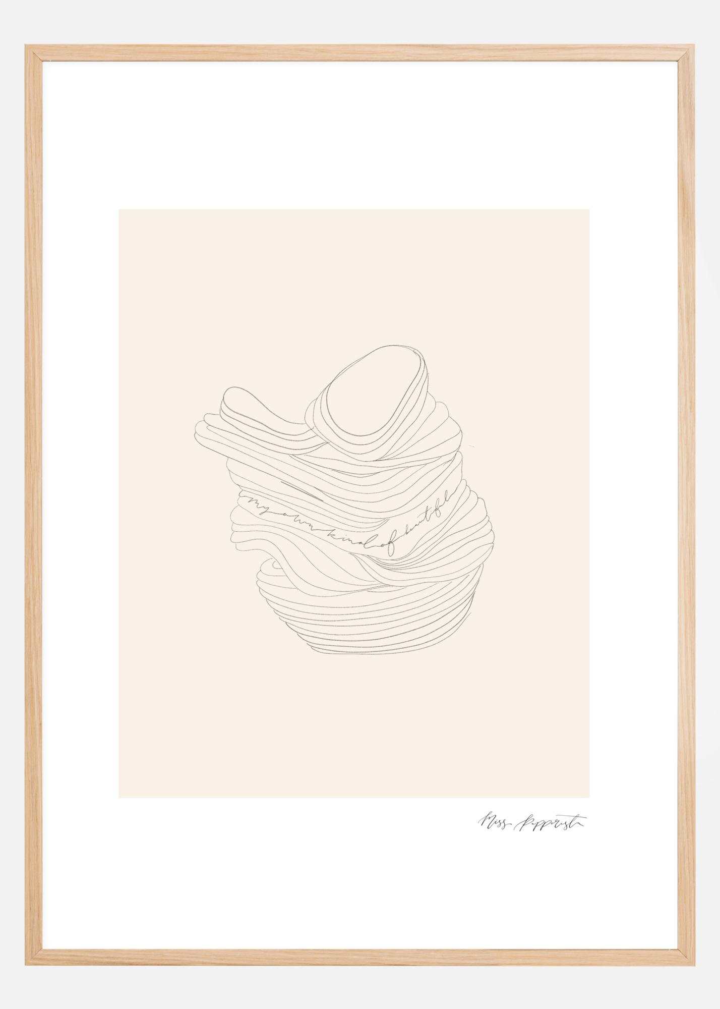 Zanimljiva crtež naslaganih predmeta. Bež pozadina vodi pogled prema rebrastoj zdjeli na slici. Savršen ispis za započinjanje razgovora. Objesite ovaj poster u svojoj dnevnoj sobi i pokušajte smisliti što su naslagani predmeti.
