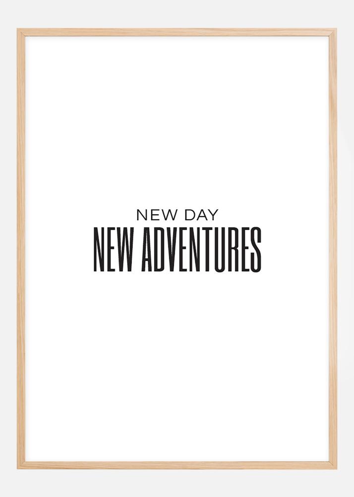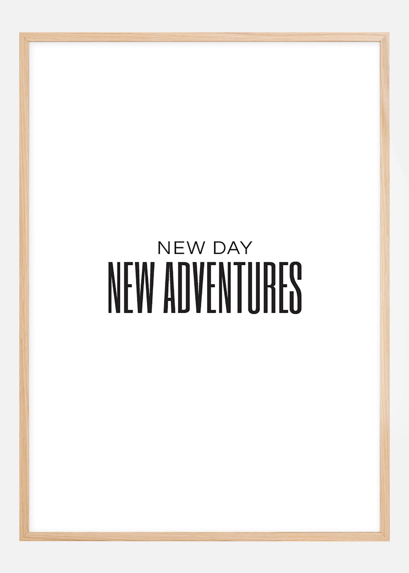 Jednostavan i elegantan poster s velikim slovima i porukom "Novi dan, nove avanture". Tekstualni posteri savršeni su dodaci za veće kolaže i zidove s umjetninama. Preporučujemo da ga nadopunite s nečim iz našeg velikog asortimana okvira.