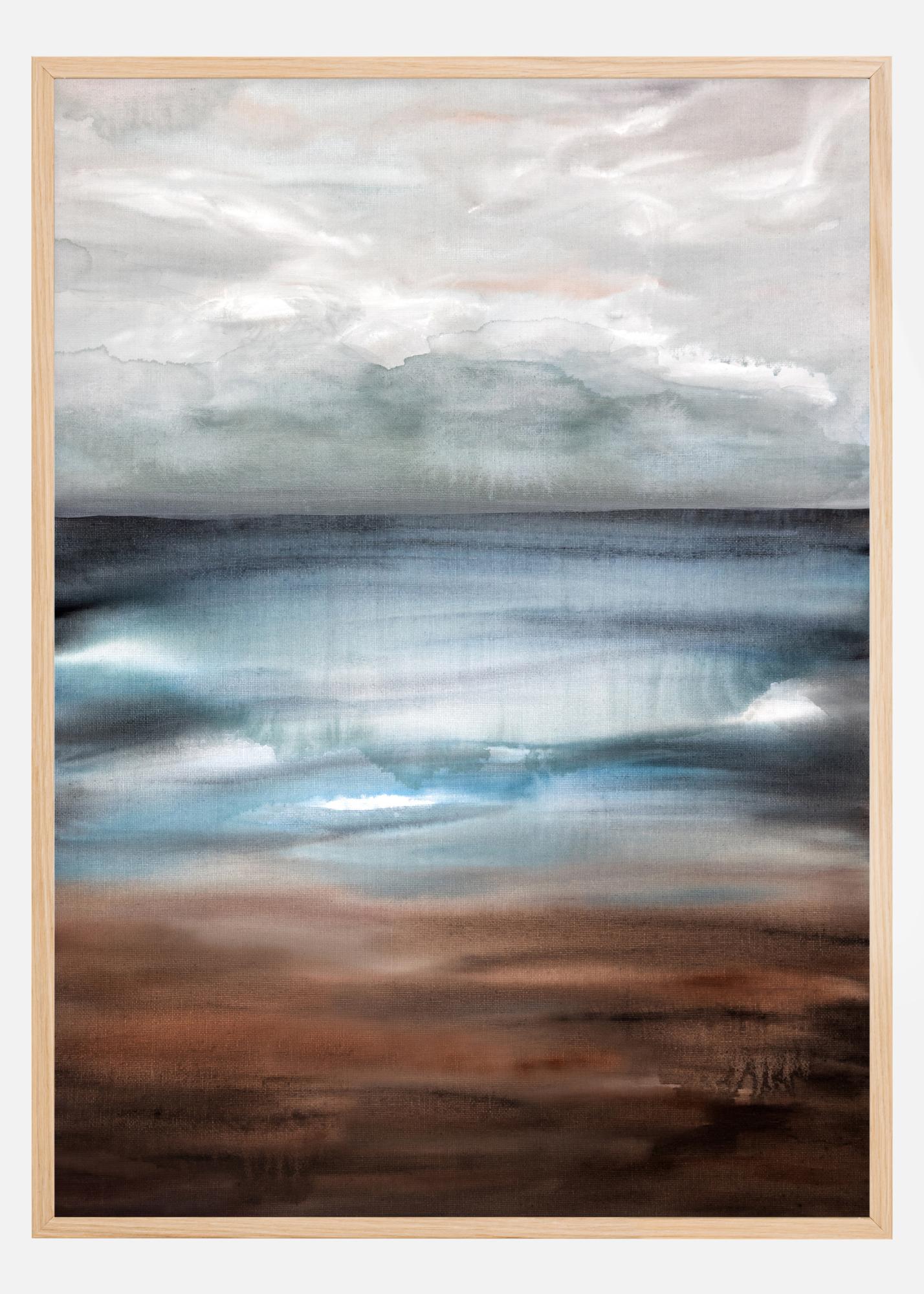 Opuštajuća reprezentacija novog dana. Mekane pastelne boje prikazuju oblačno jutro s maglom nad morem. Horizont se savršeno stapa sa sivim i bijelim oblacima. S ovim opuštajućim i umirujućim posterom na zidu gotovo možete čuti more.