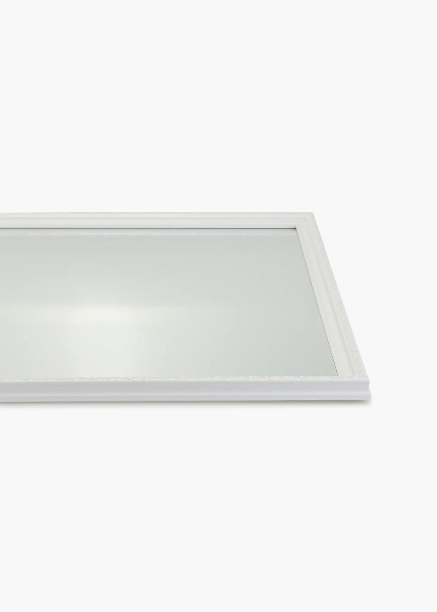 Bijelo ogledalo postaje svjež detalj u svakom domu, a ovaj model također unosi veliku eleganciju! Ogledalo je izrađeno od kompozita i ima tradicionalno neobojeno staklo. Okvir širine 25 mm ima prekrasno uzorkovan profil, što ostavlja vrlo sofisticiran dojam.