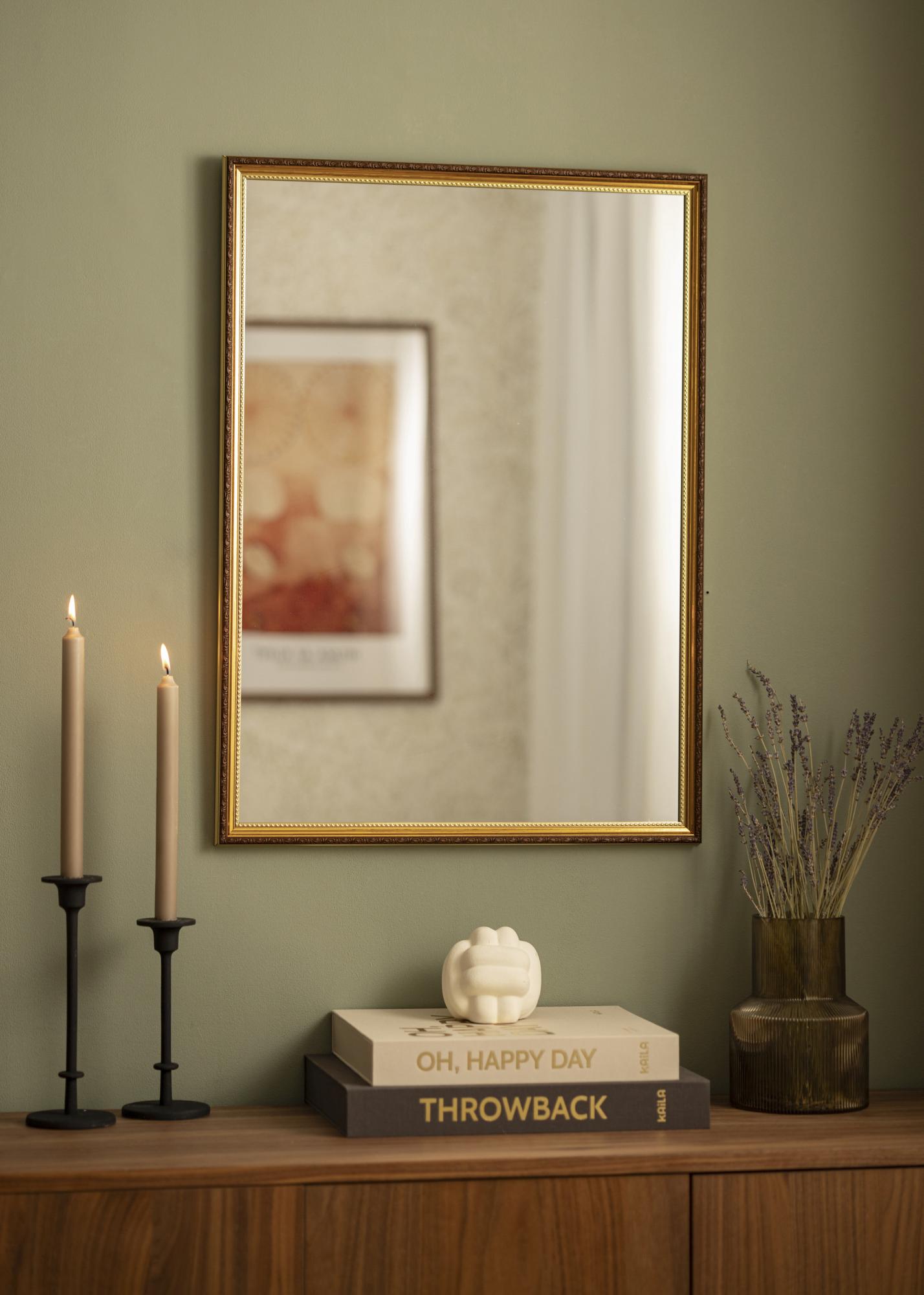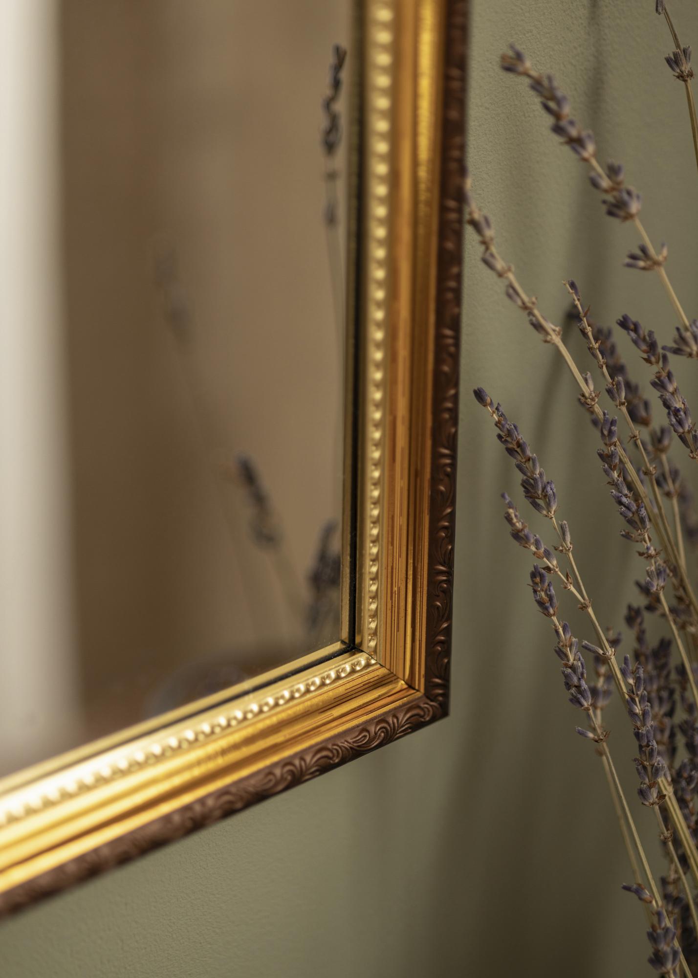 Abisko Guld je zidno ogledalo za one koji traže dekorativno ogledalo s elegantnim retroinspiriranim izgledom. Ogledalo ima okvir Å¡irine 25 mm s smeÄom nijansom i ekskluzivnom zlatnom bojom najbliže staklu ogledala. Okvir ima prekrasan ornamenti profil, Å¡to Äini zidno ogledalo vrlo stilskom zidnom dekoracijom koja se dobro uklapa u hodnik kao i u spavaÄu sobu.
