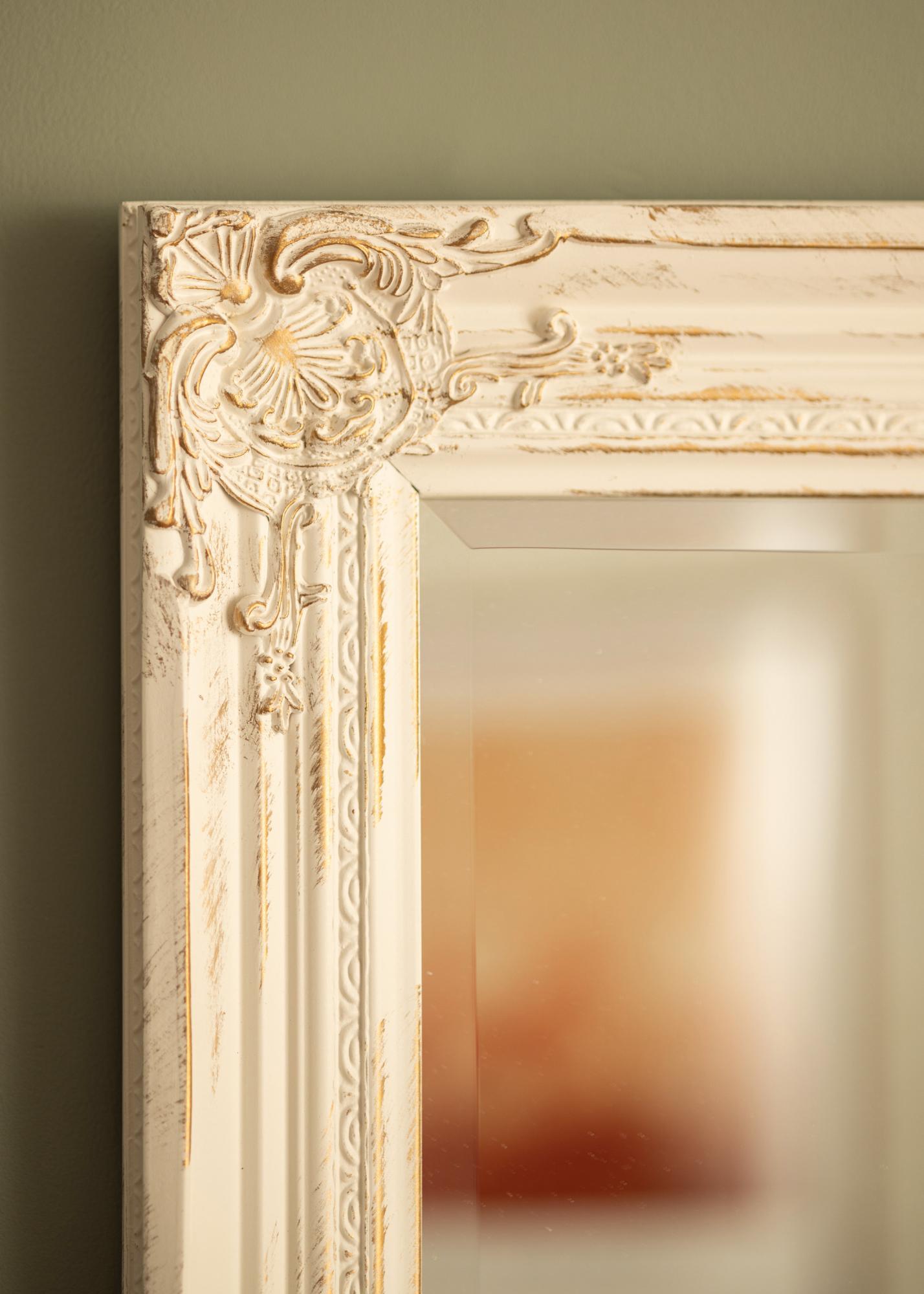 Zrcalo Antique Bijelo je zidno ogledalo tradicionalnog formata i oblika. Ima okvir od drva s prekrasnim klasično oblikovanim ukrasom koji je izliven u žbuci i zatim nanesen na okvir. Ovaj okvir čini zrcalo prekrasnim ukrasom koji će privući poglede.