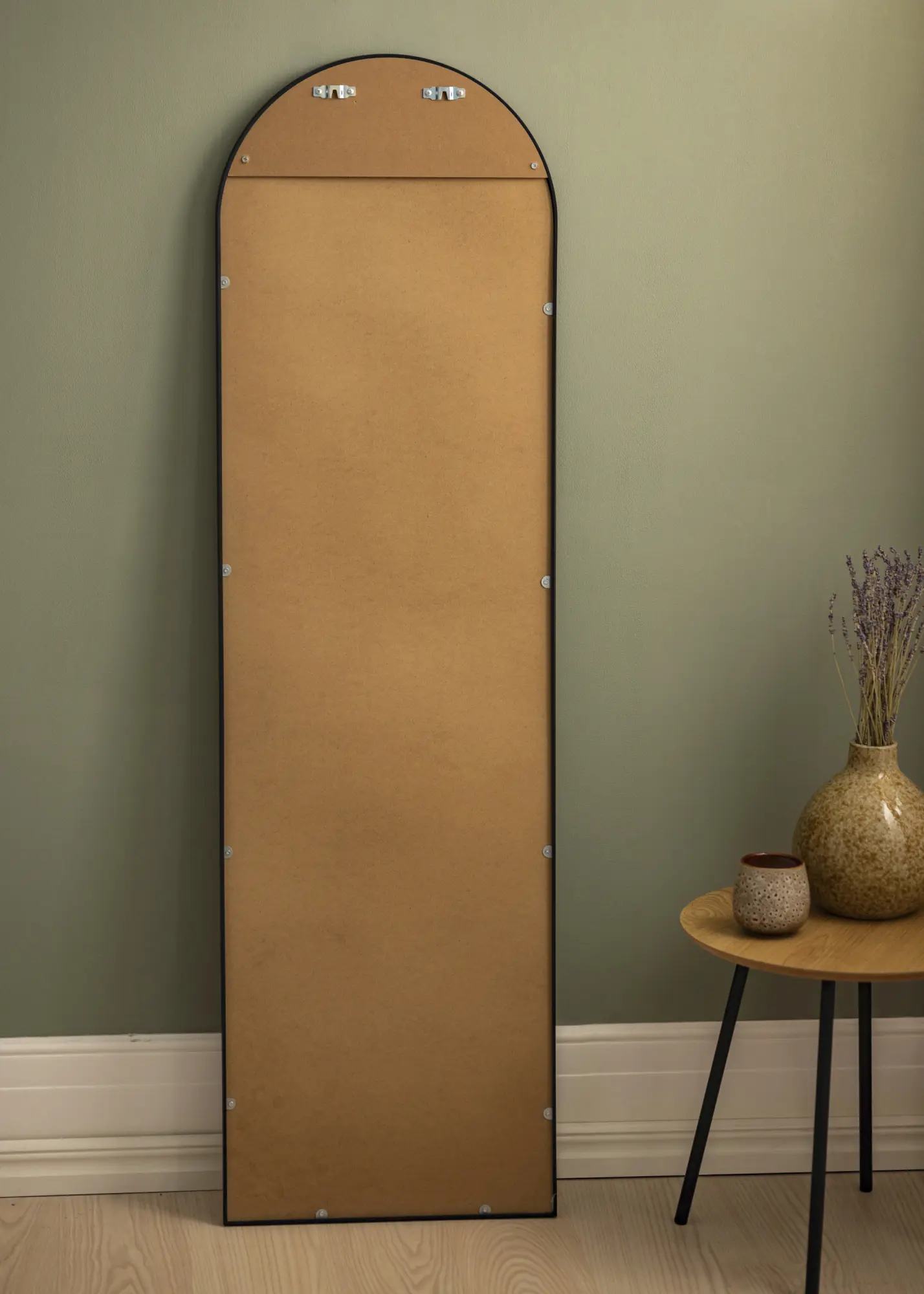 Ovo bezvremensko ogledalo bit Äe elegantan dodatak vaÅ¡em domu, bilo da je ureÄen u modernom ili tradicionalnom stilu. Zrcalo za zid ima elegantan luÄni oblik i tanki crni aluminijski okvir. Montira se na zid u uspravnom položaju.