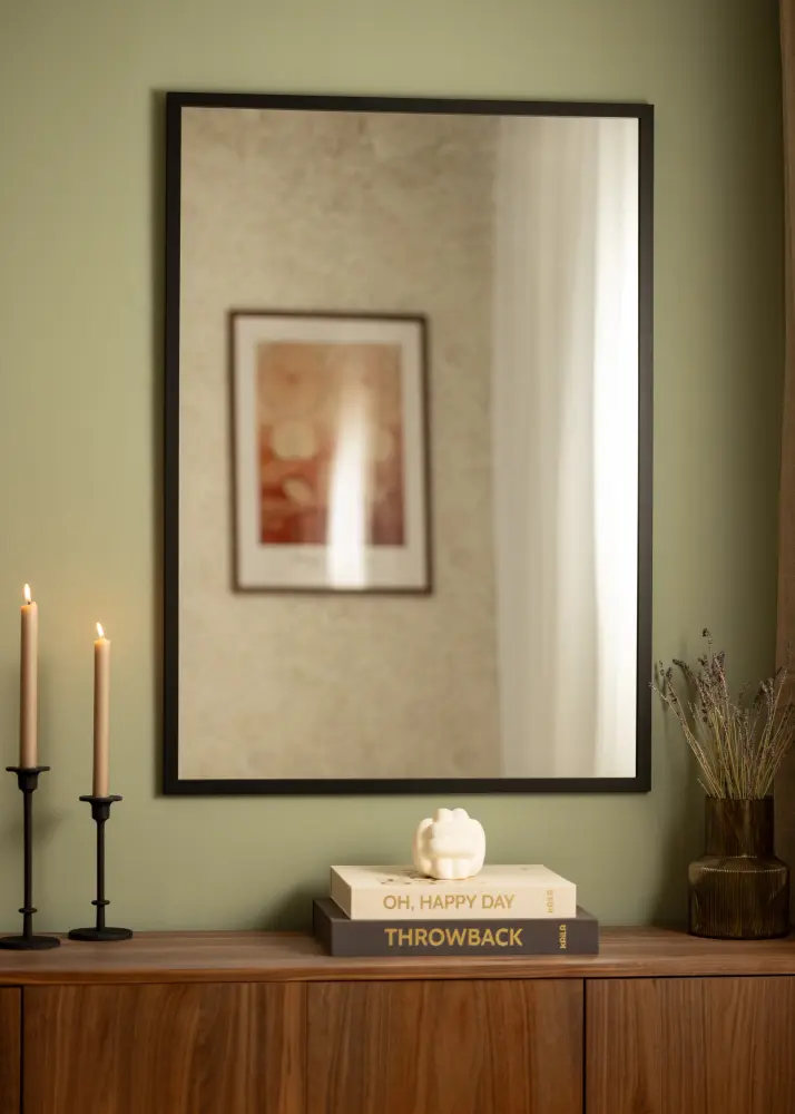Black Wood je izvrstan izbor za tebe koji tražiš elegantno zidno ogledalo s jednostavnim crnim okvirom. Ogledalo je izrađeno od obojenog drva ayo i opremljeno neobojenim staklom. Okvir širine 22 mm ima tradicionalan četvrtasti profil koji omogućuje da površina ogledala bude u fokusu.