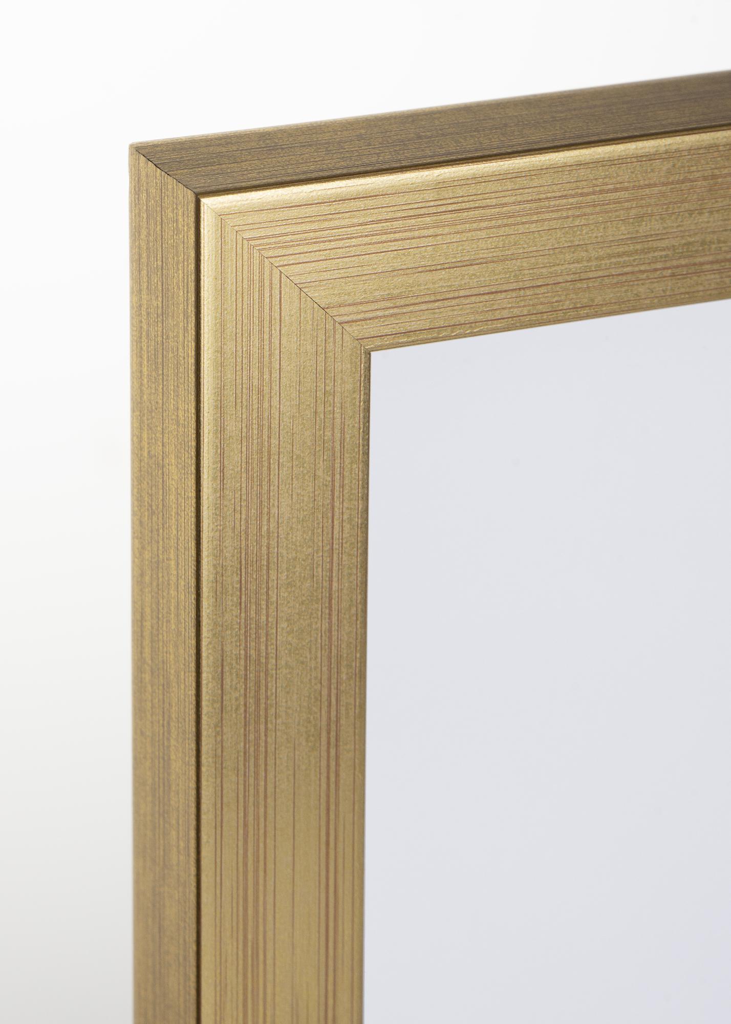 Zlatni okvir daje zrcalu elegantan i luksuzan osjećaj koji se uklapa u većinu stilova uređenja. Okvir je širok 20 mm i ima dubinu od 20 mm, što zrcalu daje stabilnu i robusnu konstrukciju. Izrađeno od folirane borovine, zrcalo kombinira trajnost s elegantnim dizajnom.