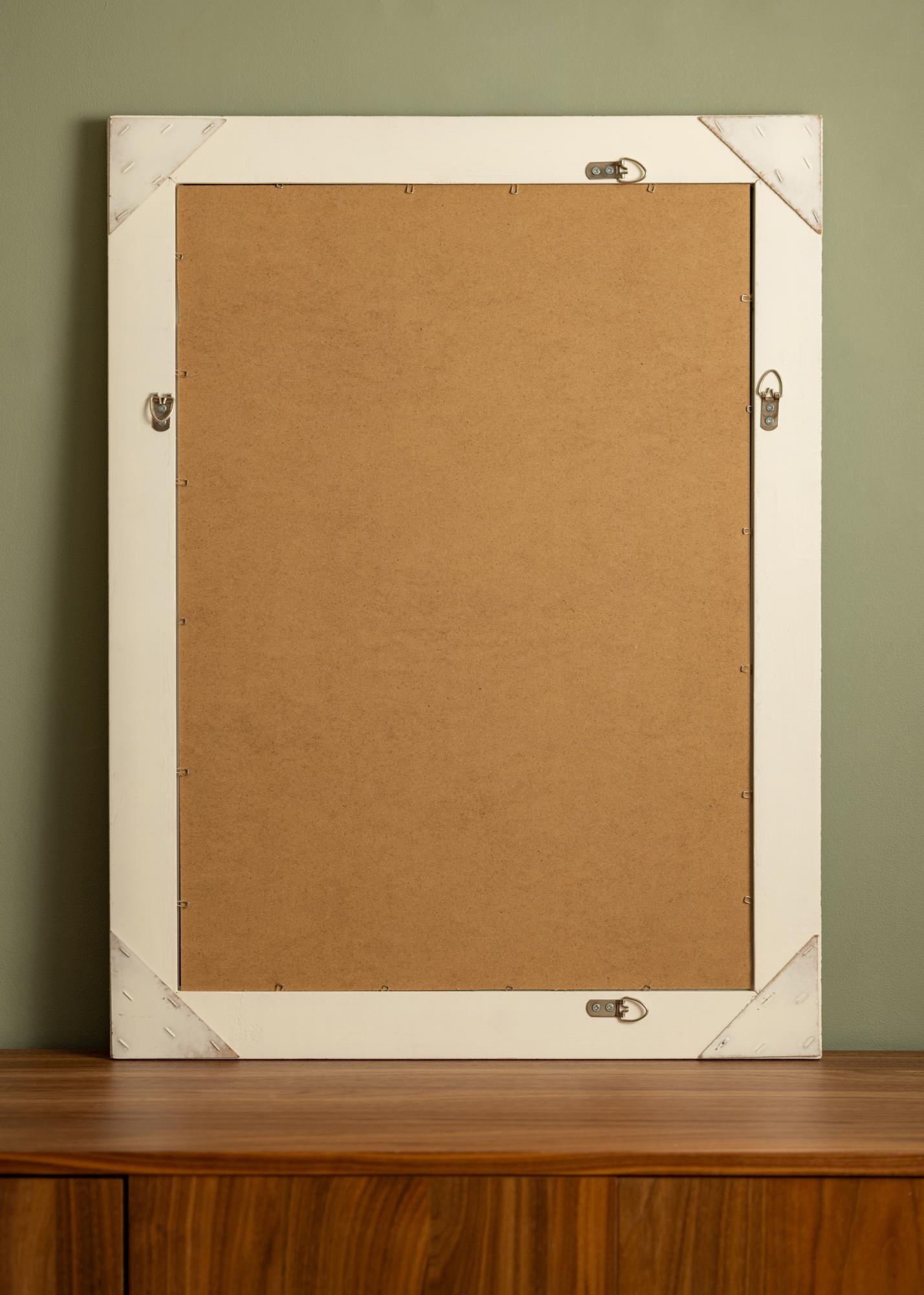 Serija ogledala Bologna Bijela ima latinski dizajn s bogatim ukrasima na kutovima i sredini stranica okvira. Okvir je nešto uži od mnogih drugih ogledala u ovom stilu. Okvir je izrađen od drveta, a dekor je izliven u gipsu prije nego što je nanesen na okvir.