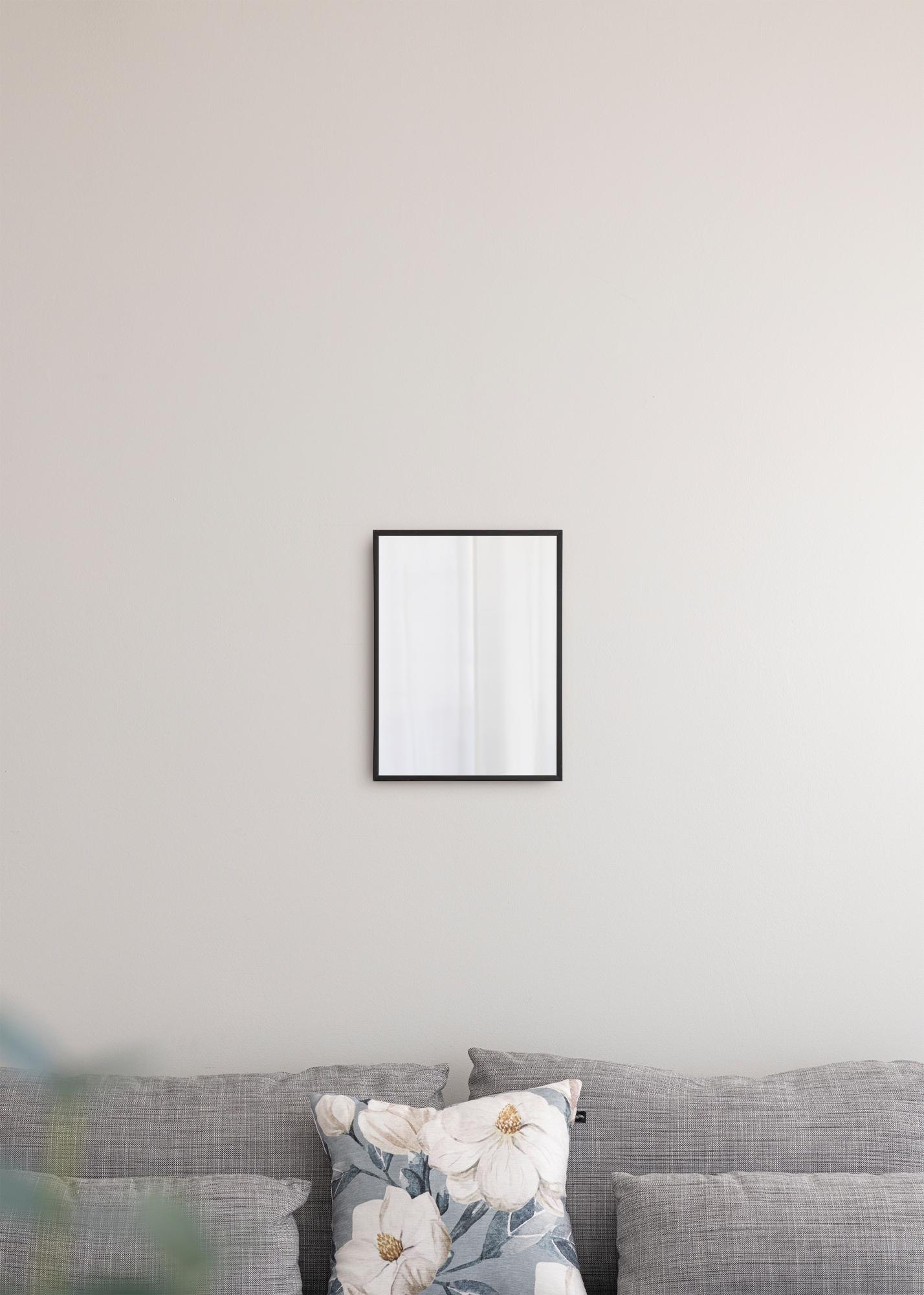 Ovo zidno ogledalo je savršena kombinacija stila i funkcije. Okvir je izrađen od aluminija i širok jedva 10 mm, što mu daje elegantan, minimalistički izgled. Ogledalo pripada seriji zidnih ogledala u različitim bojama i veličinama, od kojih je ovo crna varijanta dimenzija 31,1x41,1 cm.