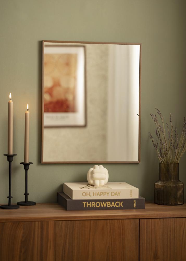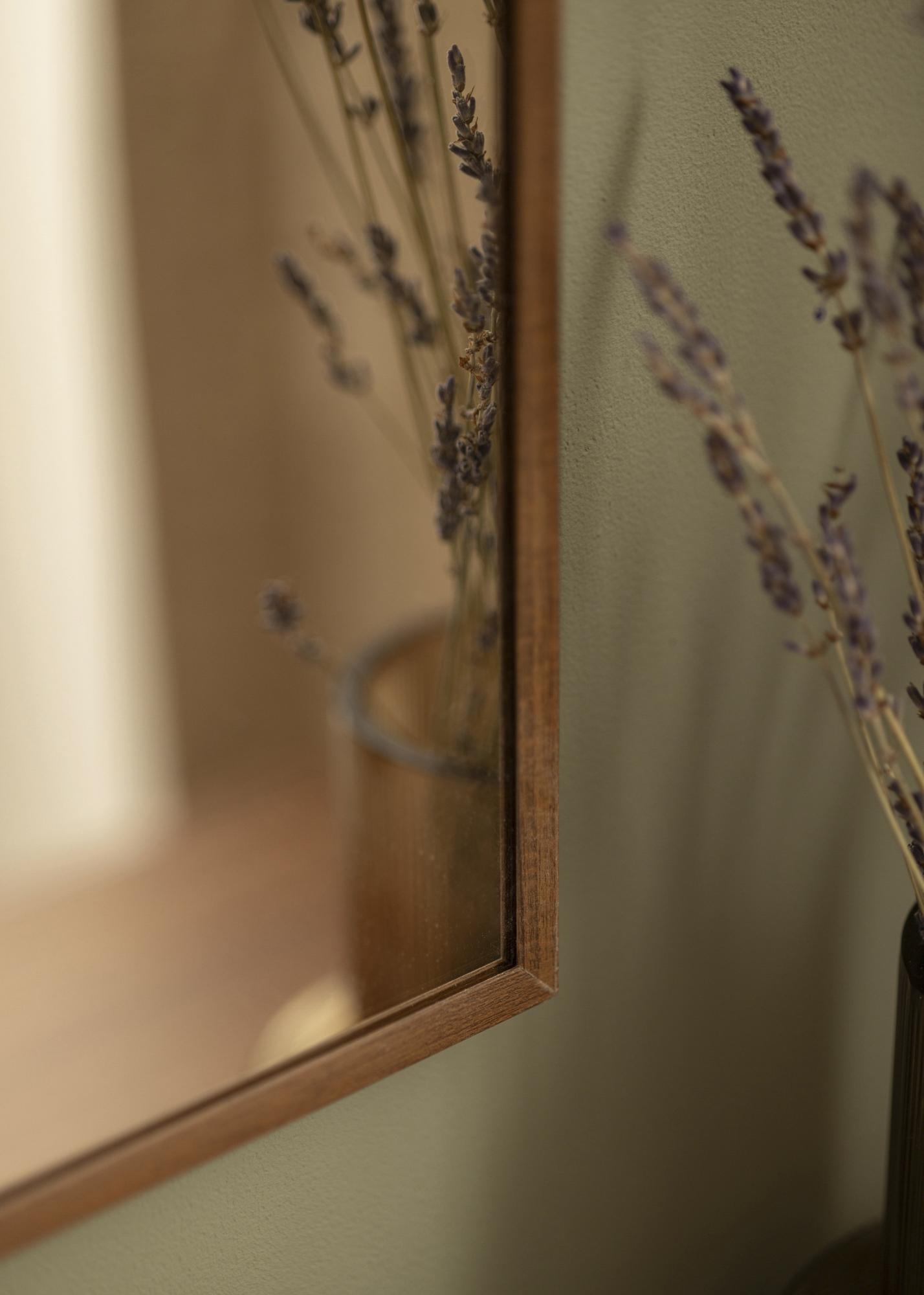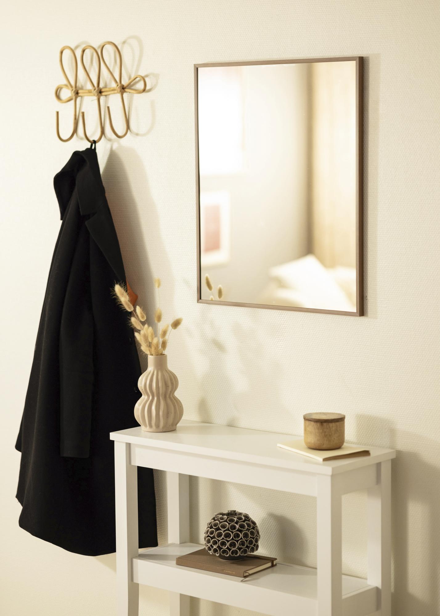Ovo zidno ogledalo je savršen spoj stila i funkcionalnosti. Okvir je izrađen od aluminija i jedva 10 mm širok, što daje elegantan, minimalistički izraz. Ogledalo je dio serije zidnih ogledala u različitim bojama i veličinama, od kojih je ova varijanta drvene boje u veličini 51,1x61,1 cm.