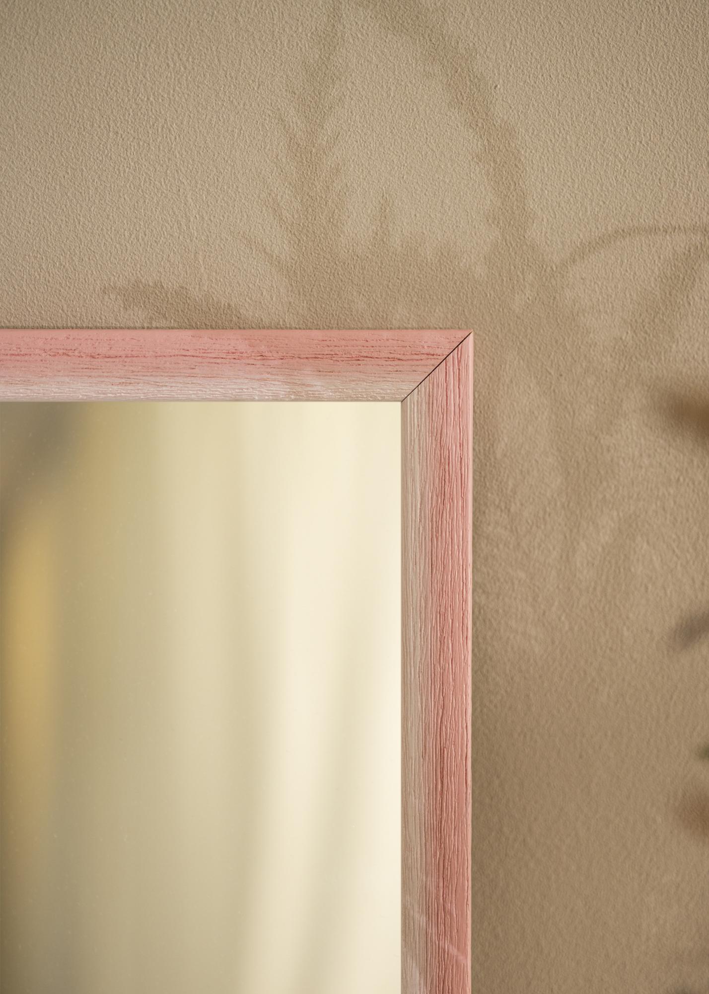 Okvir na Zrcalu Cornwall Ružičasto je širok 23 mm i ima dubinu od 13 mm, što mu daje čvrst i robustan osjećaj. Izrađen od ayous drveta, okvir naglašava prirodnu strukturu drveta s dubokim godovima koji zrcalu daju rustikalan i zemljani karakter. Ručno oslikani učinak stvara se nježnim prijelazom boje, što daje okviru živ i dinamičan izraz.