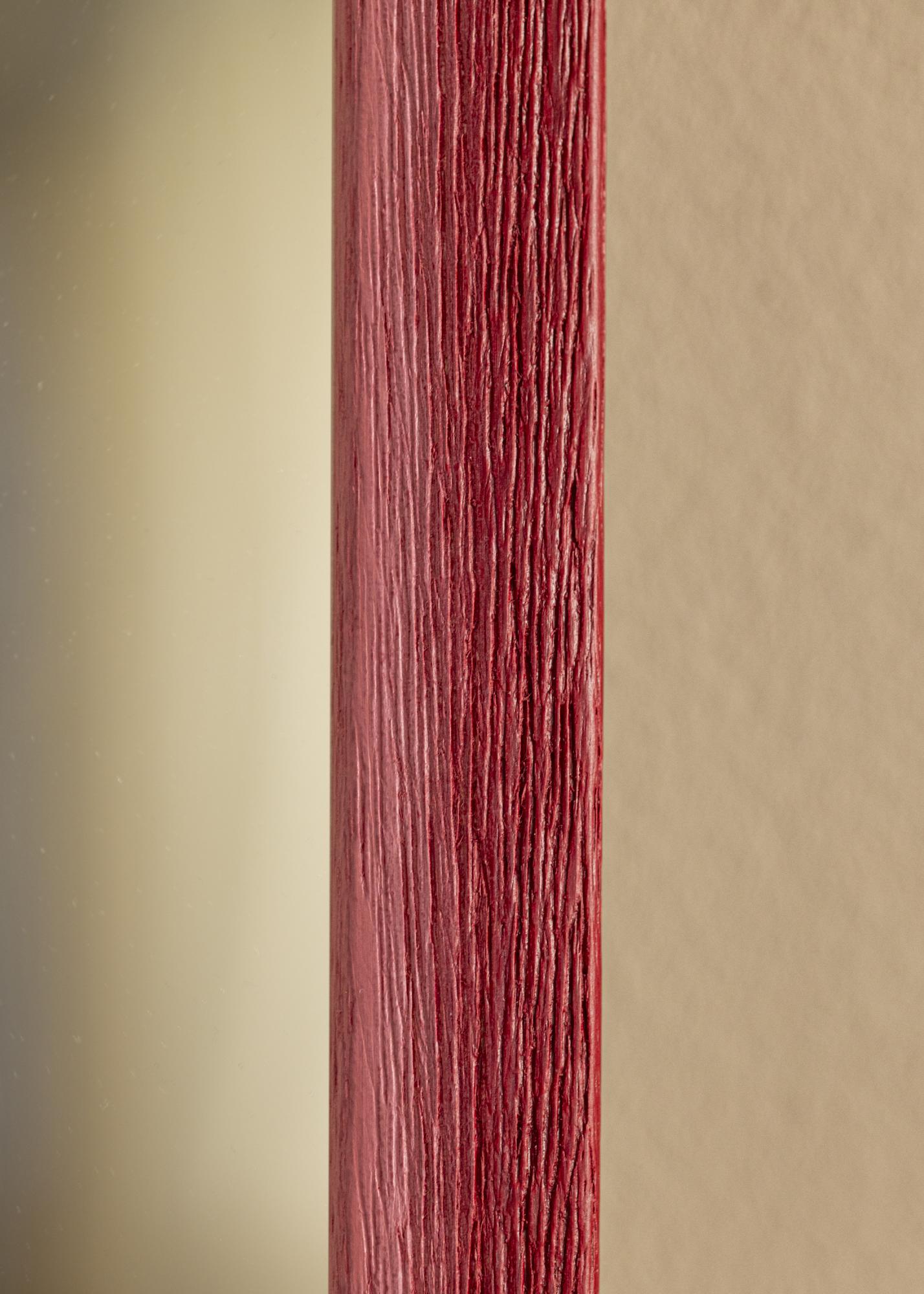 Okvir je izrađen od drveta ayosa, materijala poznatog po svojoj izdržljivosti i prekrasnoj strukturi drva. Prirodne žile u drvetu pojačavaju rustikalni izgled zrcala i daju mu jedinstven karakter. S okvirom širokim 23 mm i dubokim 13 mm, zrcalo ima uski profil koji pridonosi njegovoj elegantnoj jednostavnosti. Mat završna obrada ublažava intenzitet boje i stvara harmoničnu ravnotežu koja ne preplavljuje prostoriju.