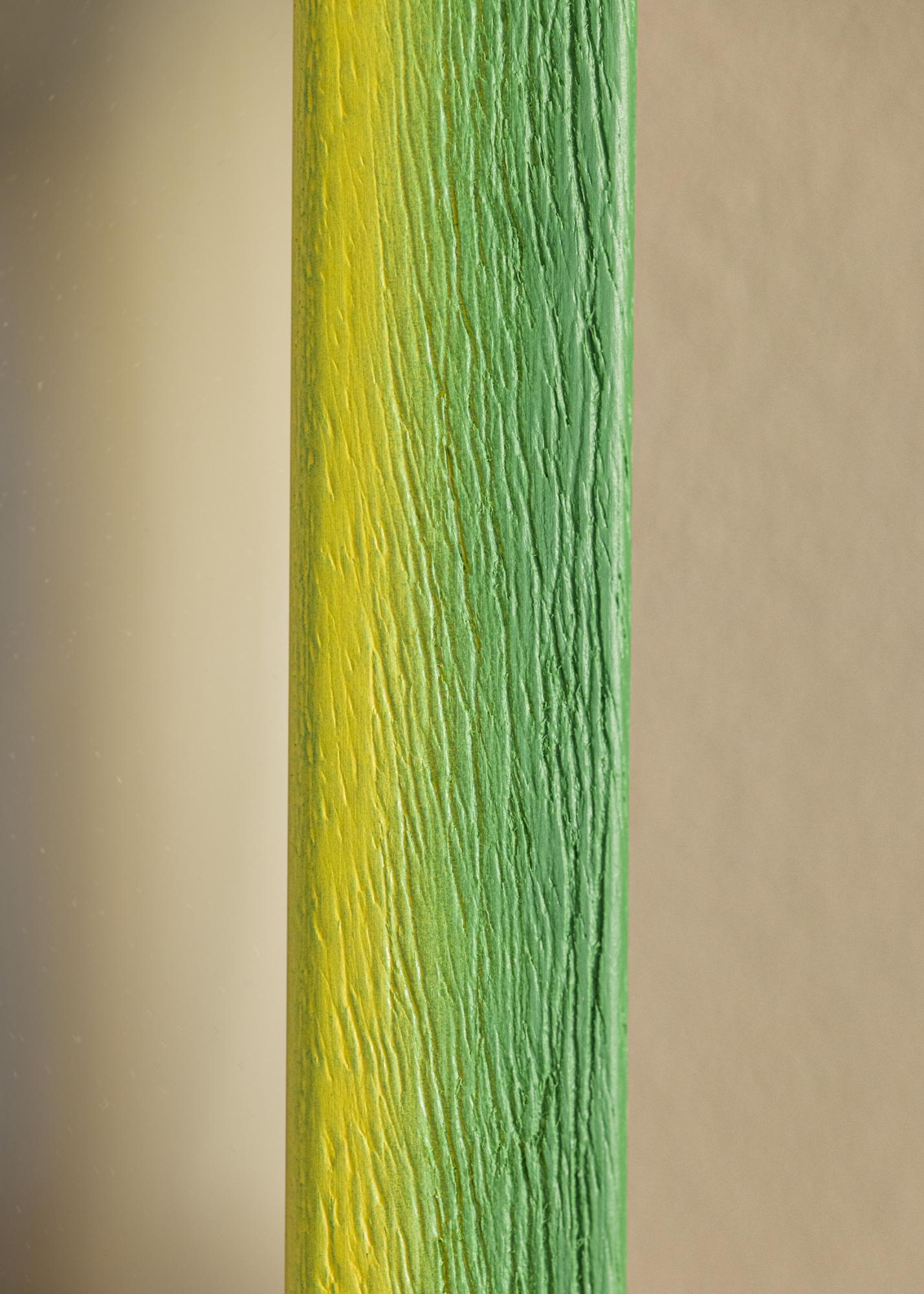 Ovo zrcalo se ističe svojom živopisnom paletom boja, gdje mekani prijelaz od sunčano žute do bujne zelene stvara harmoničnu i ugodnu atmosferu. Površina je obilježena prepoznatljivom drvenastom strukturom s dubokim godovima, što zrcalu daje taktilni osjećaj koji je i moderan i rustičan. Nijanse se prirodno stapaju i stvaraju efekt ručno oslikanog s organskim izrazom, što čini svako zrcalo jedinstvenim.