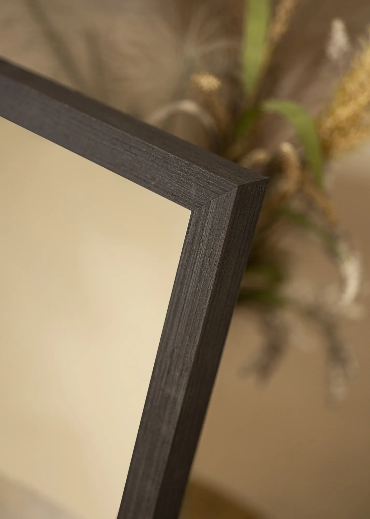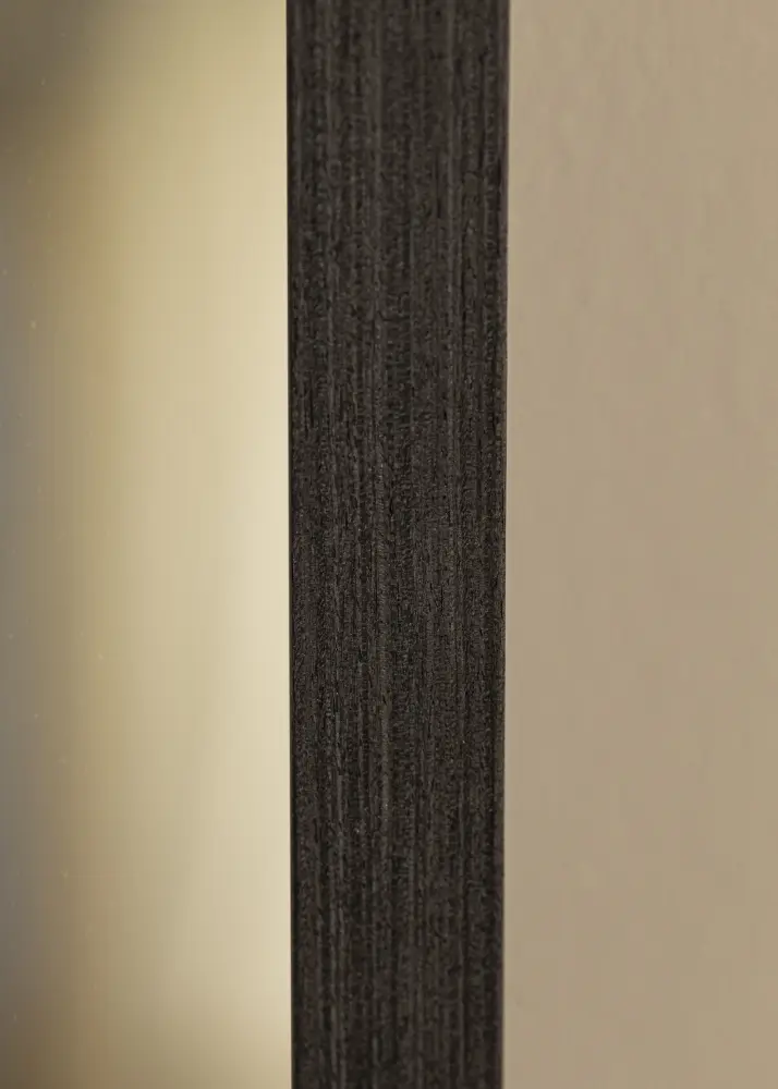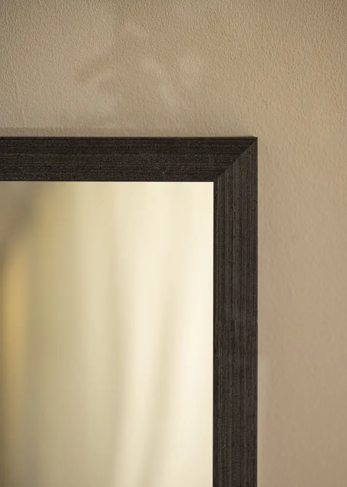 Okvir zrcala je širok 28 mm i ima dubinu od 33 mm, što pruža stabilan i robustan osjećaj bez zauzimanja prostora. Crna boja okvira daje moderan dodir i stvara lijep kontrast nasuprot staklu zrcala. Izrađeno od bora, ovo zrcalo nudi i izdržljivost i prirodni osjećaj koji nadopunjuje njegov elegantan izgled.