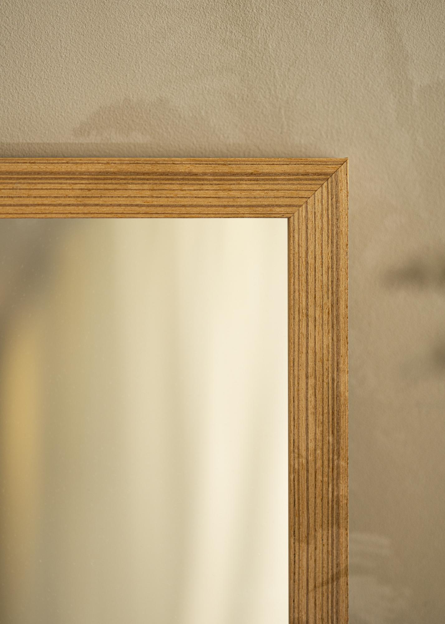 Okvir zrcala je širok 28 mm i ima dubinu od 33 mm, što daje stabilan i robustan osjećaj. Izrađeno od bora, ovo zrcalo nudi izdržljivost koja traje s vremenom. Izražena struktura u okviru stvara živopisnu dubinu i daje taktilnu dimenziju koja čini da zrcalo izgleda živo i dinamično.