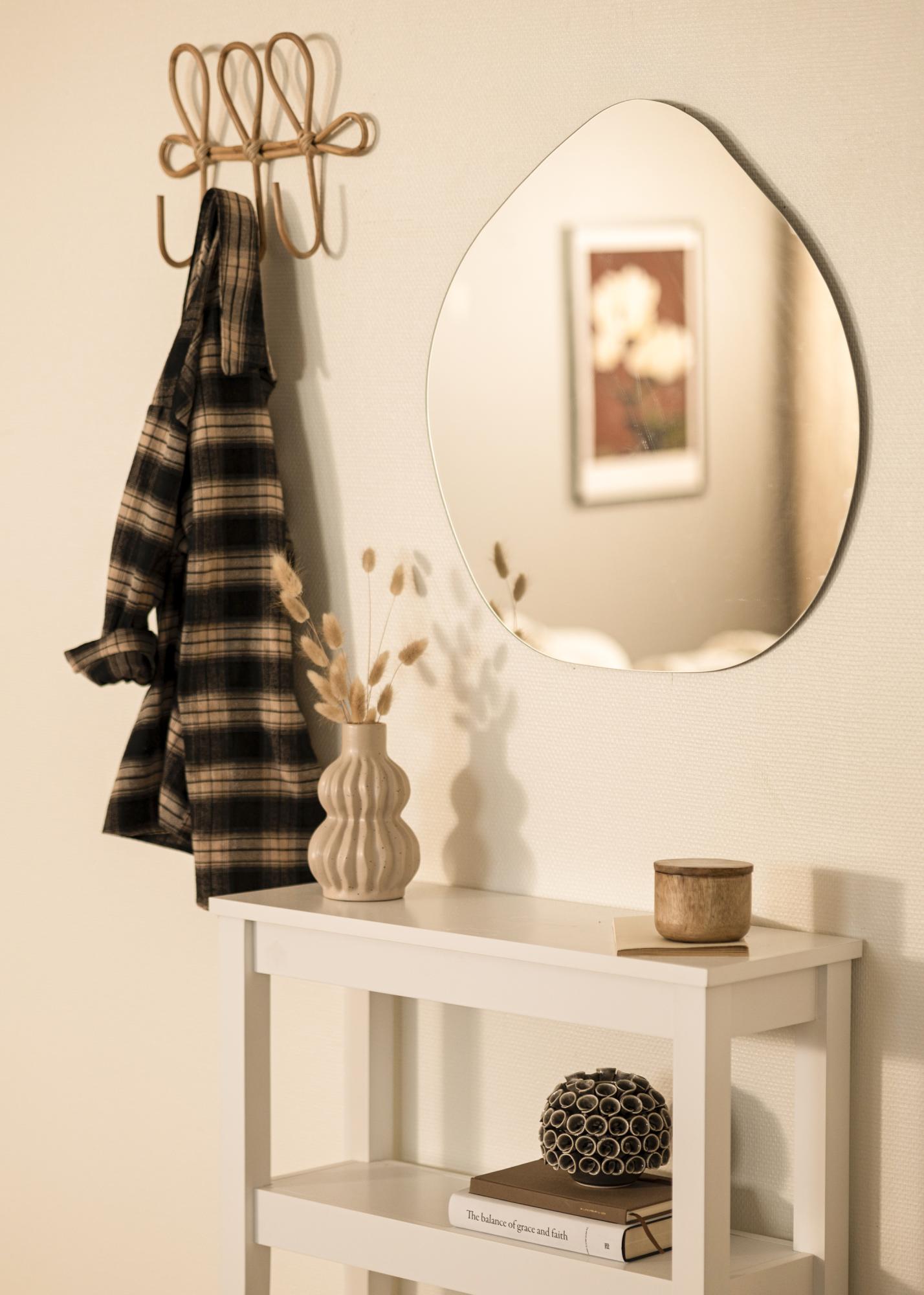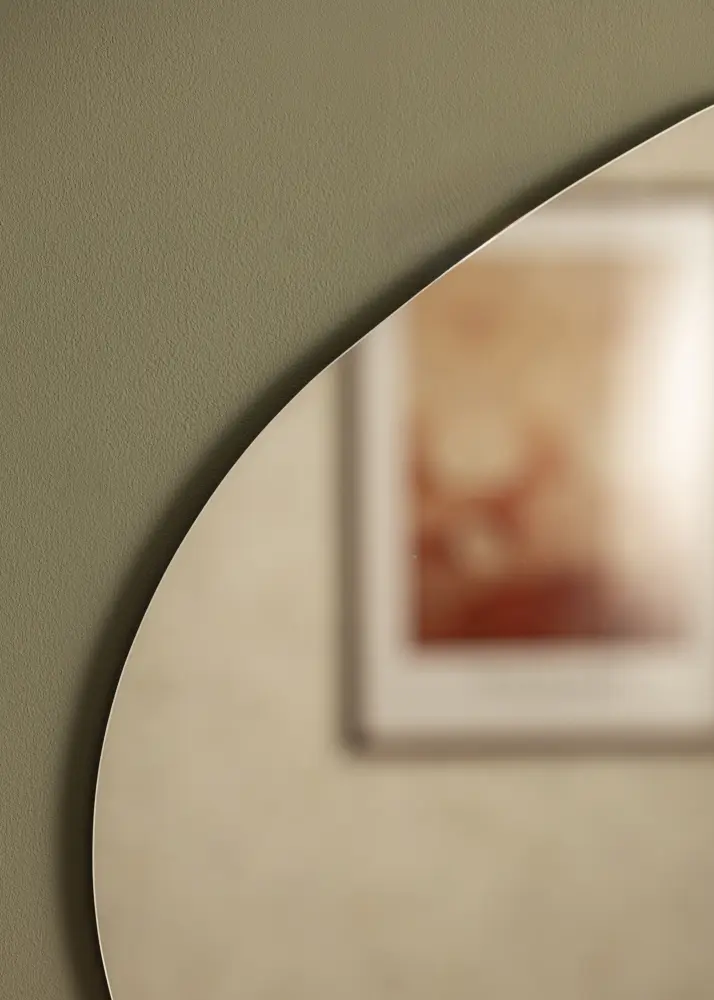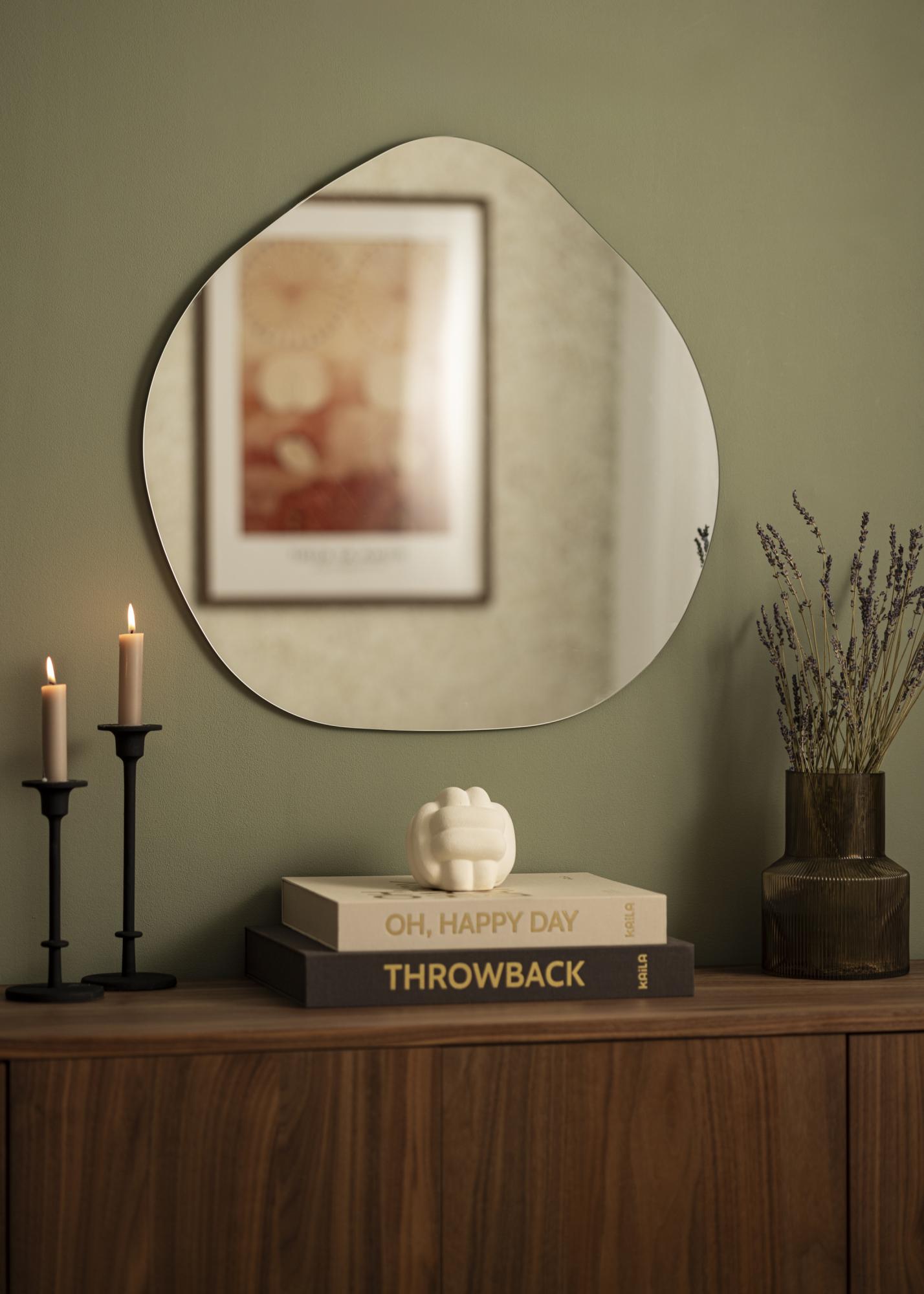 Otkrijte jedinstven Å¡arm naÅ¡eg asimetriÄno oblikovanog ogledala, pravog privlaÄenja pogleda za svaku sobu. Sa svojim mekim linijama i modernim dizajnom, ovo ogledalo nudi savrÅ¡enu ravnotežu izmeÄu funkcionalnosti i stila. Dimenzije od 60x60 cm Äine ga dovoljno velikim da bude praktiÄno, dok zadržava diskretnu prisutnost na zidu.