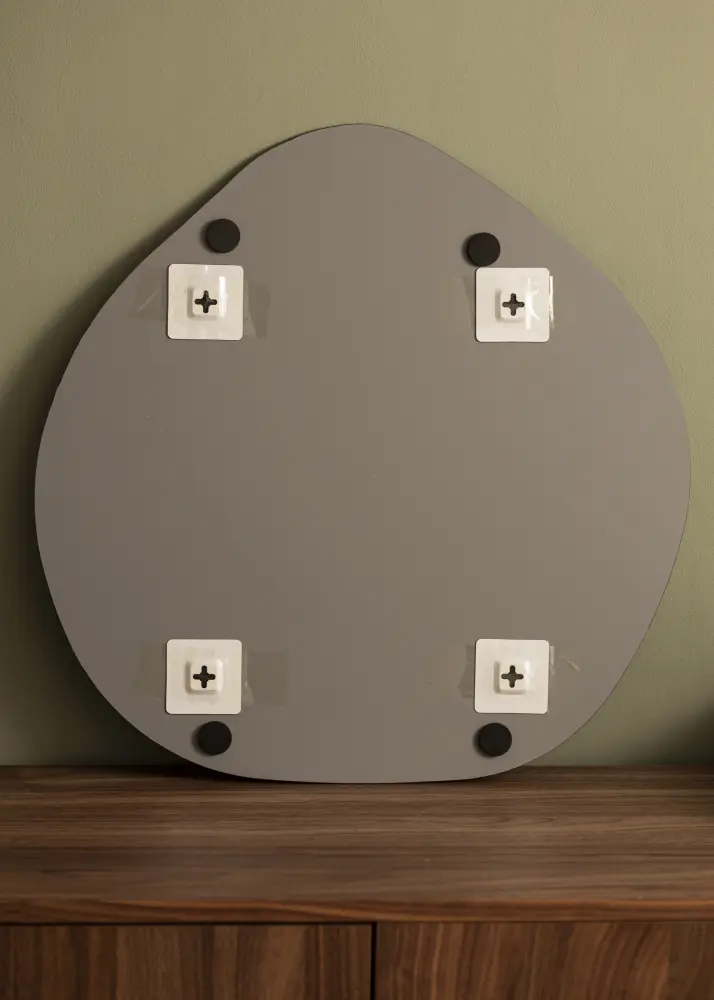 Ovo ogledalo je dizajnirano da bude svestrano, s moguÄnoÅ¡Äu da ga objesite kako okomito tako i horizontalno. Ovo vam daje slobodu da odaberete kako najbolje odgovara u vaÅ¡em prostoru, bilo da je rijeÄ o hodniku, spavaÄoj sobi ili dnevnom boravku. AsimetriÄni oblik dodaje moderni dodir koji nadopunjuje razliÄite urede i stvara zanimljiv vizualni efekt.