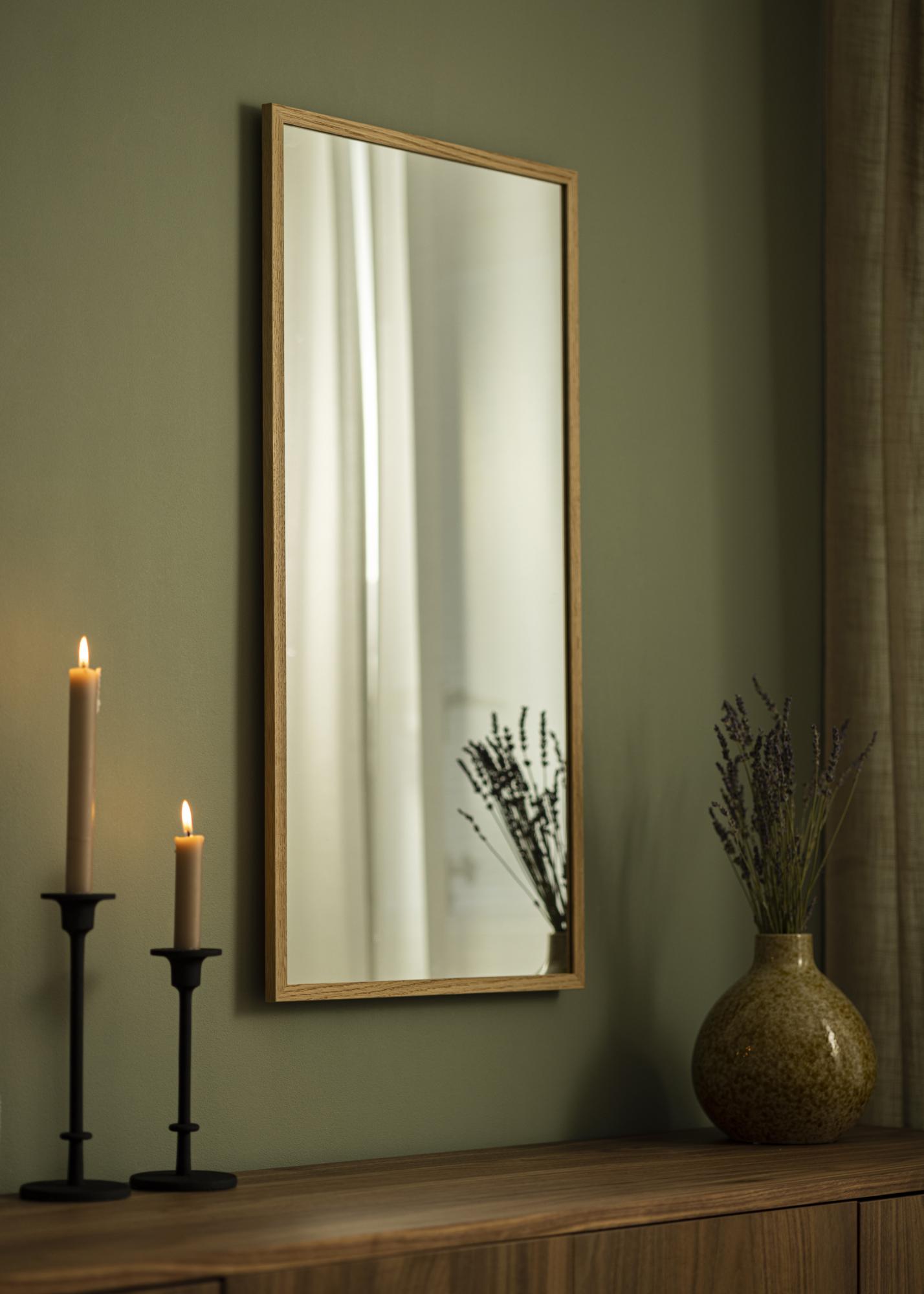 Ovo pravokutno ogledalo uokvireno je u čvrsti hrast, što daje topao i organski osjećaj vašem interijeru. Prirodni drveni okvir nije samo lijep za pogledati, već također doprinosi održivom i bezvremenskom dizajnu koji traje mnogo godina unaprijed.